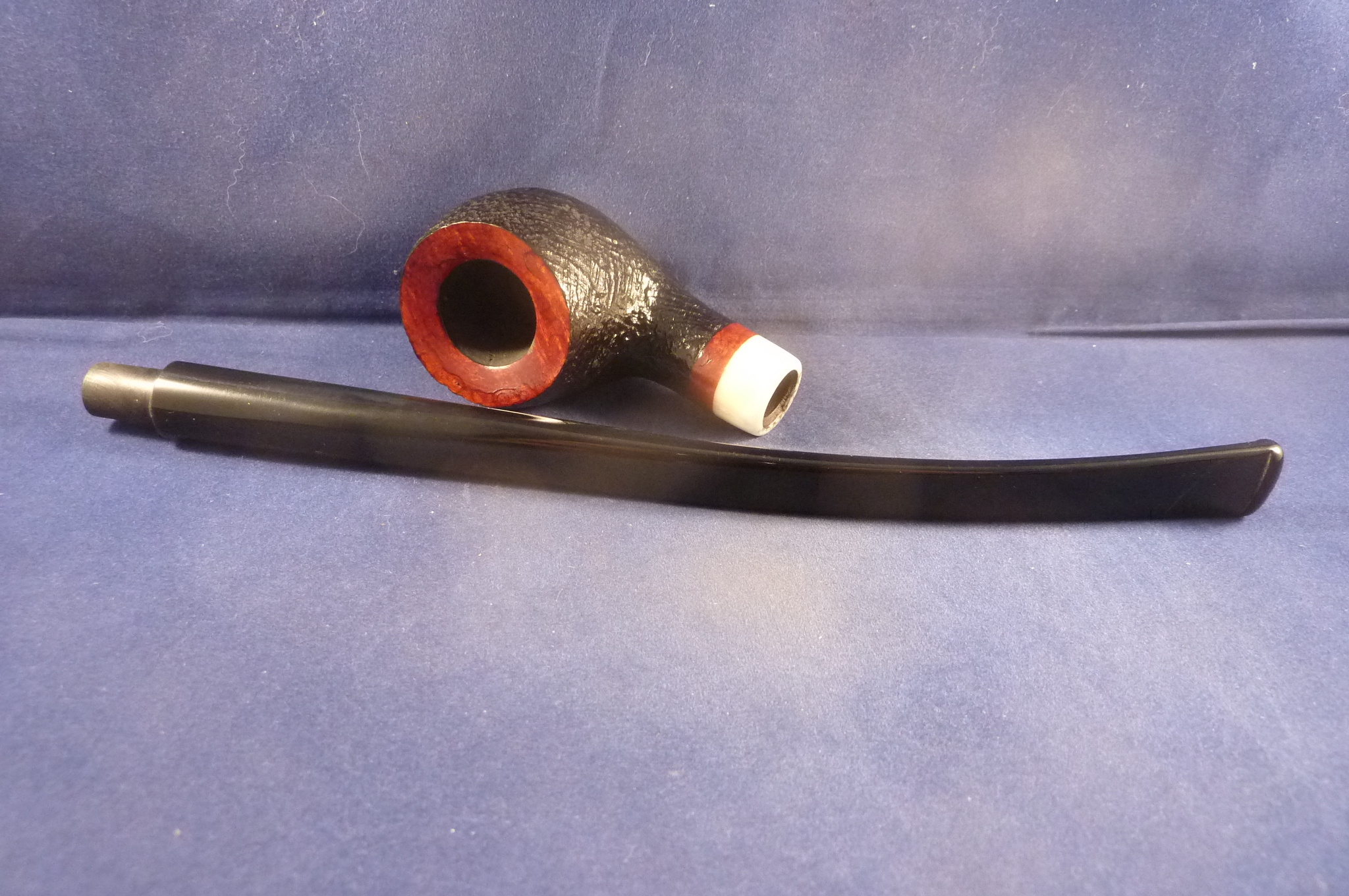Sandblasted black briar pipe with a chrome ring/mount made in France by Chacom. Black acrylic mouthpiece. Made with 9 mm. filters or without with the free adaptor.