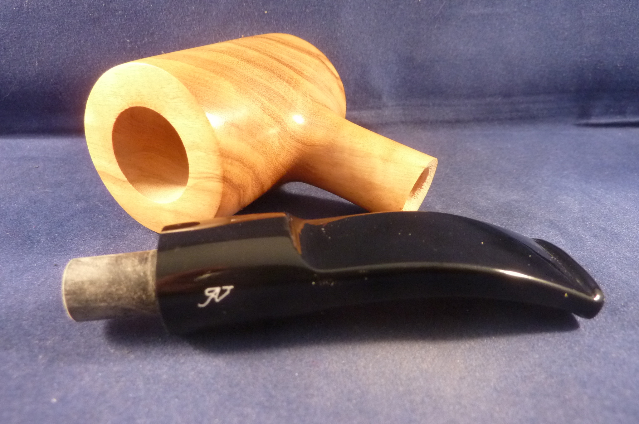 This is a brand new olive wood pipe made by Aldo Velani in Italy. Acrylic mouthpiece, 9 mm. filter.