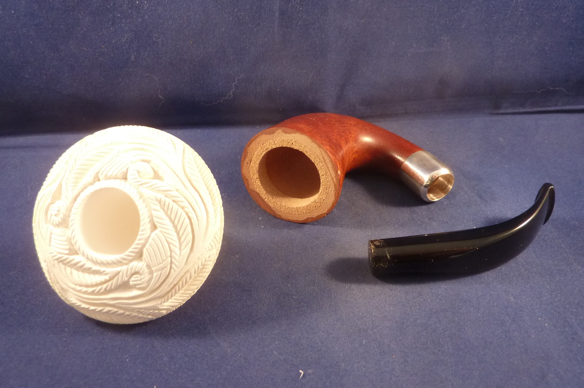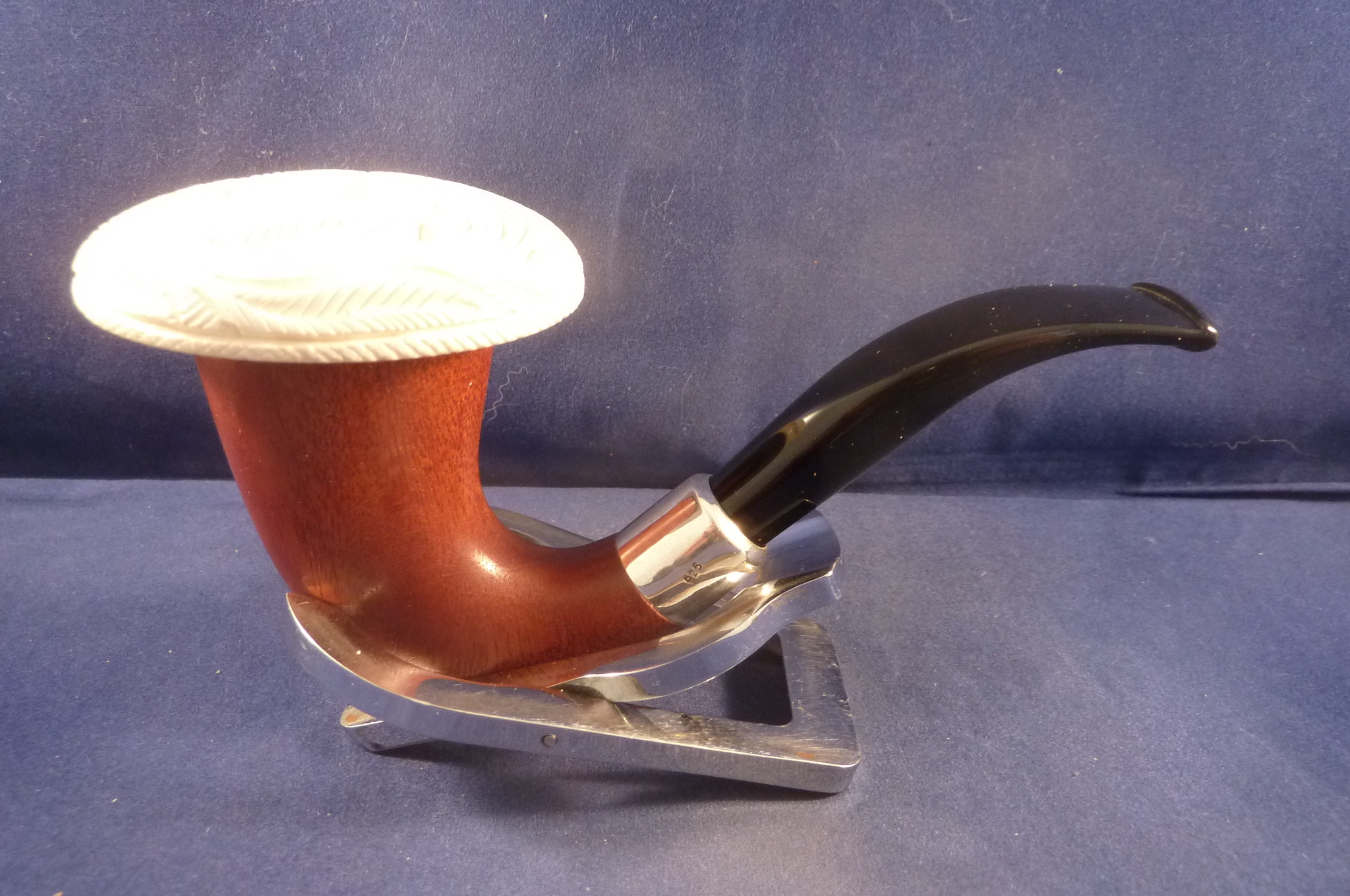 Beautiful meerschaum pipe carved from a block combined with a oak bowl by Altinay in Turkey. Acrylic mouthpiece, without filters.