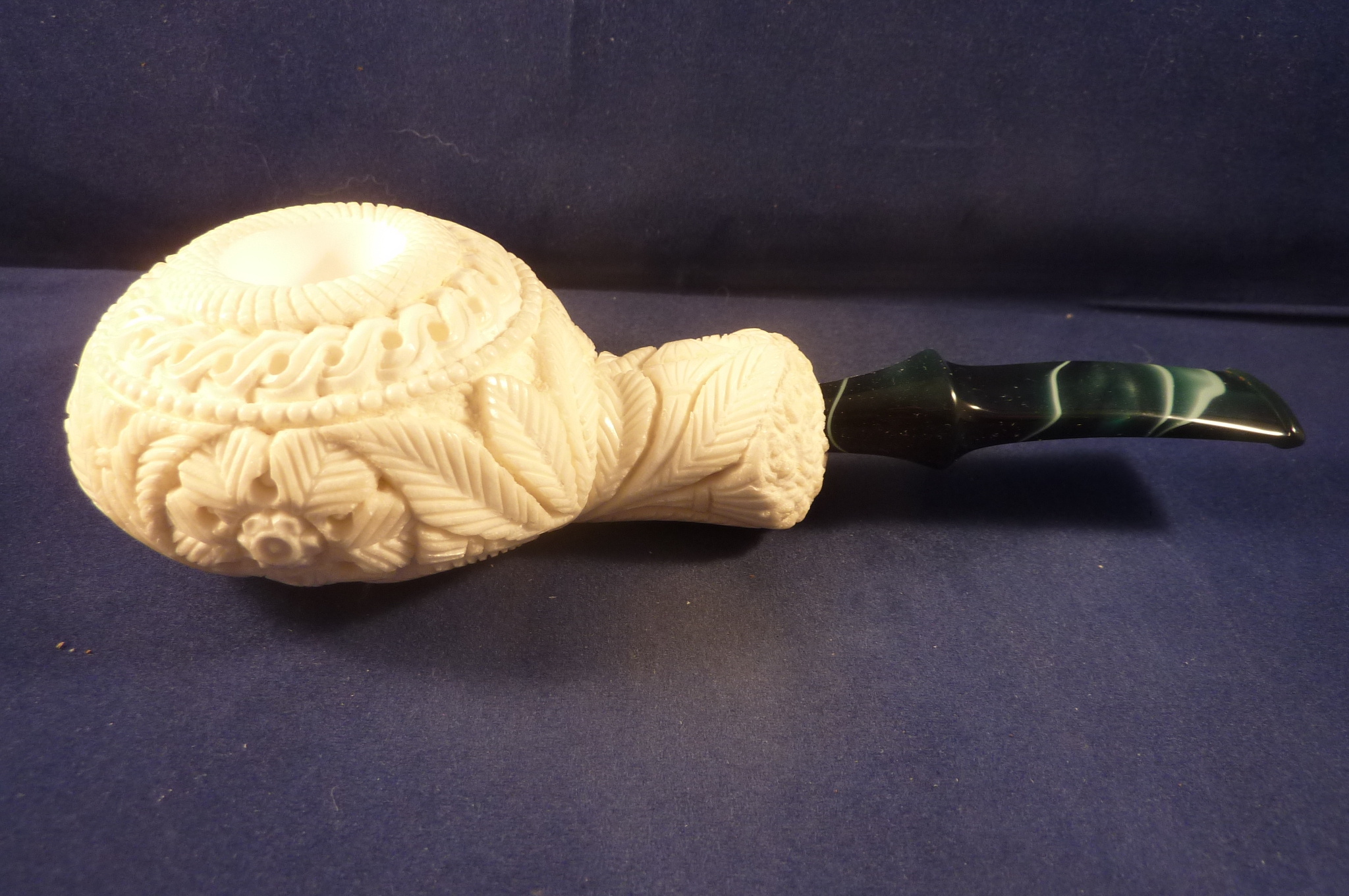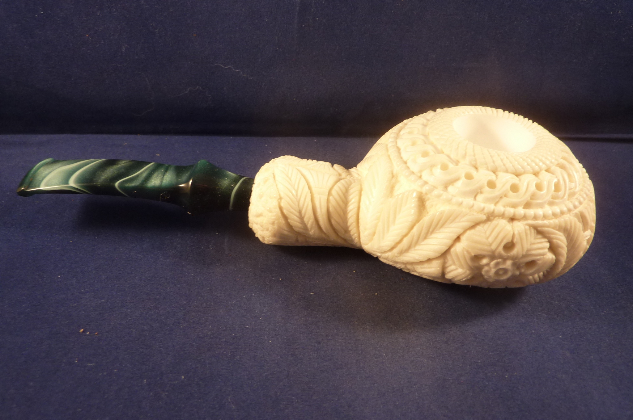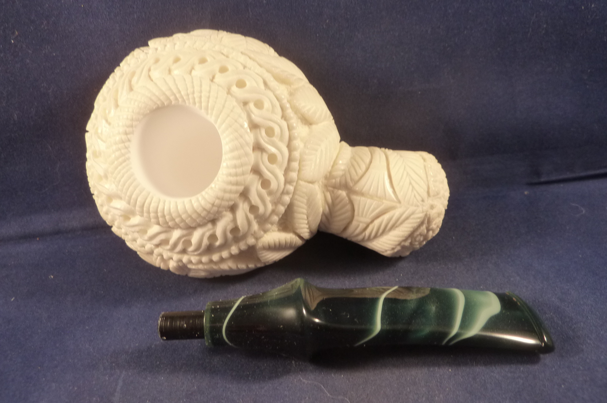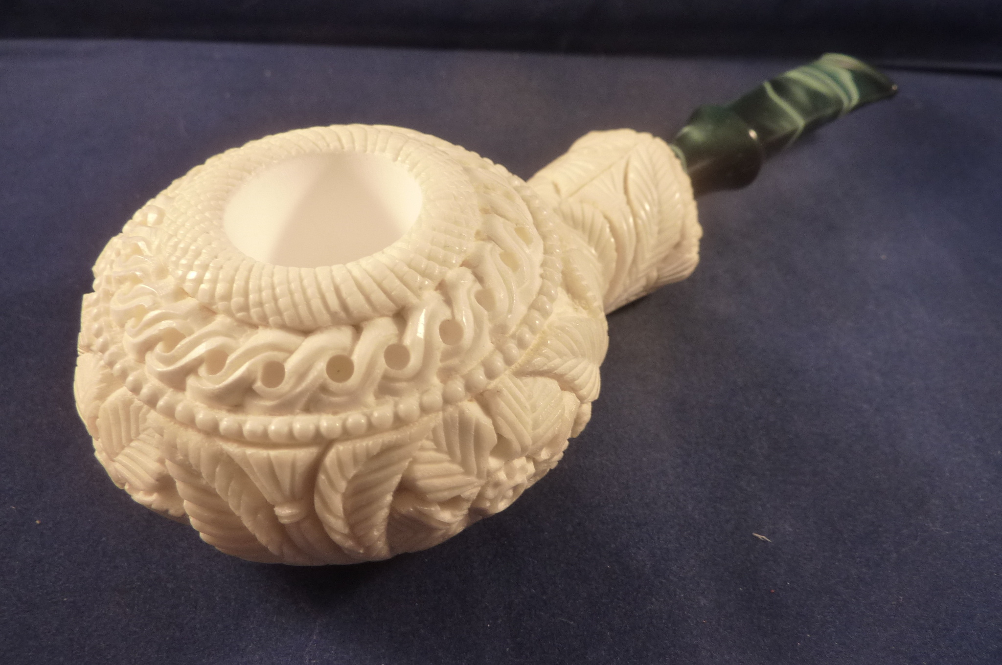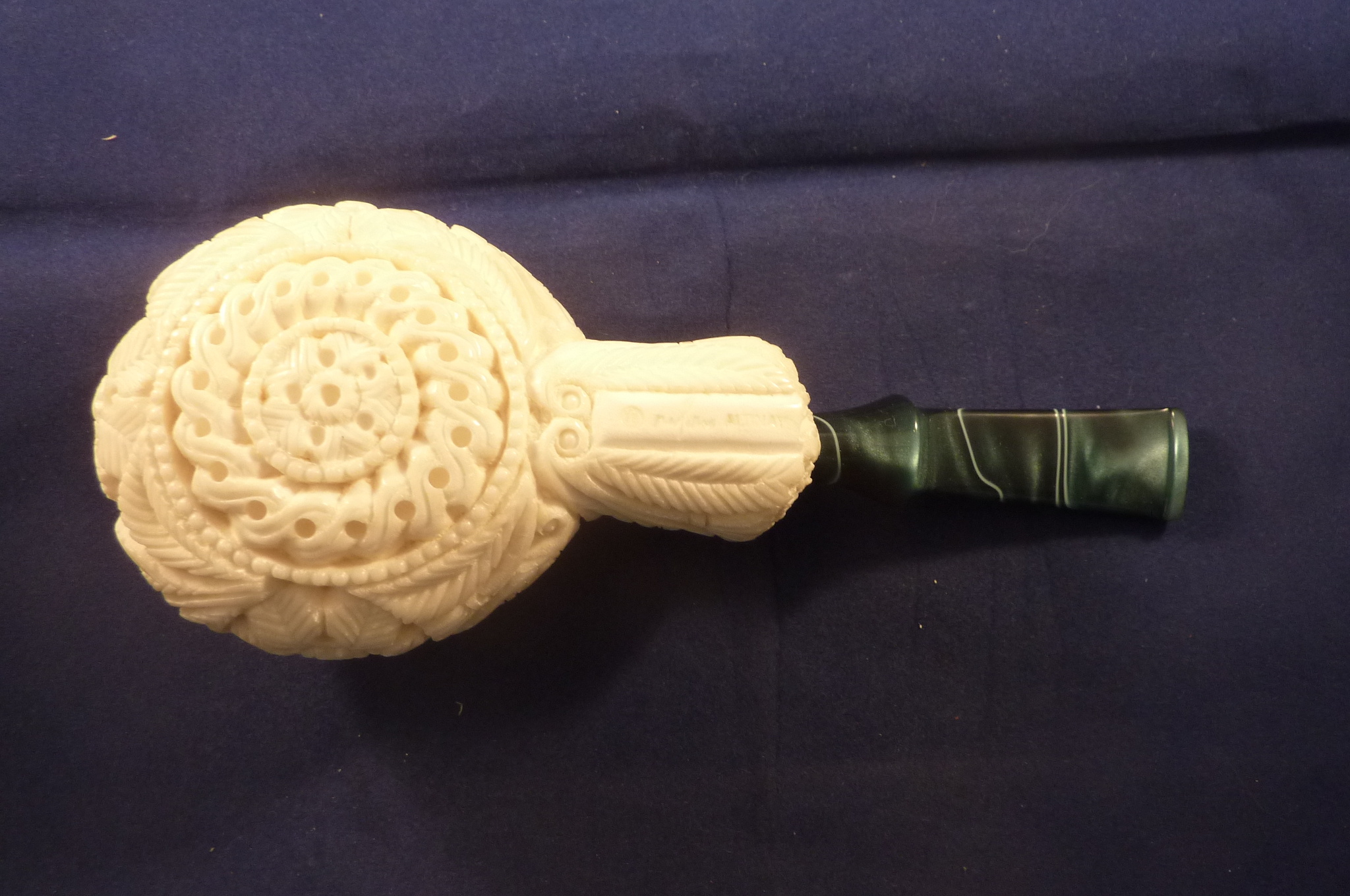 Beautiful meerschaum pipe carved from a block by Altinay in Turkey. Acrylic mouthpiece, without filters.