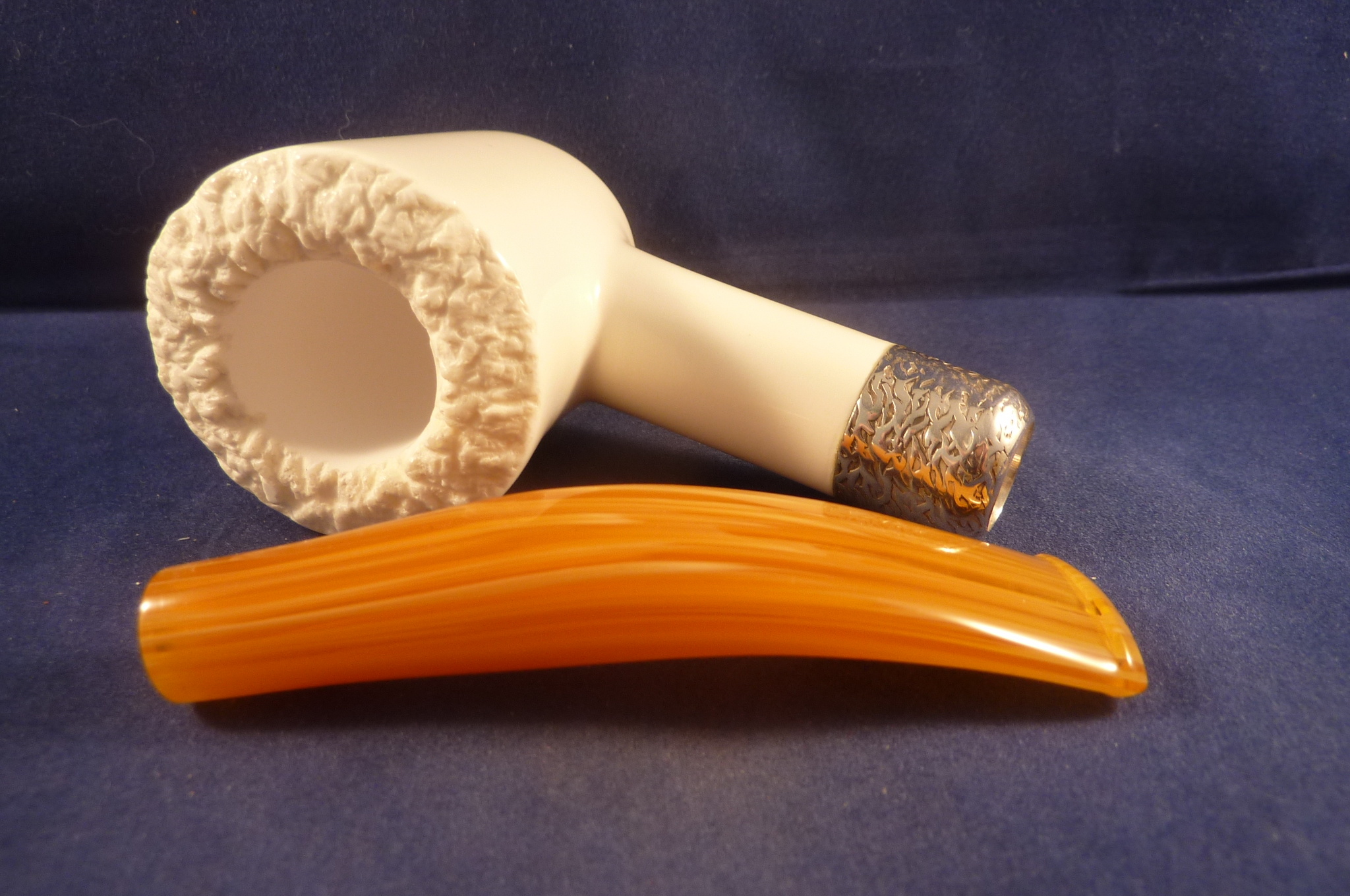 Smooth meerschaum pipe carved from a block by Altinay in Turkey. Acrylic mouthpiece, without filters.