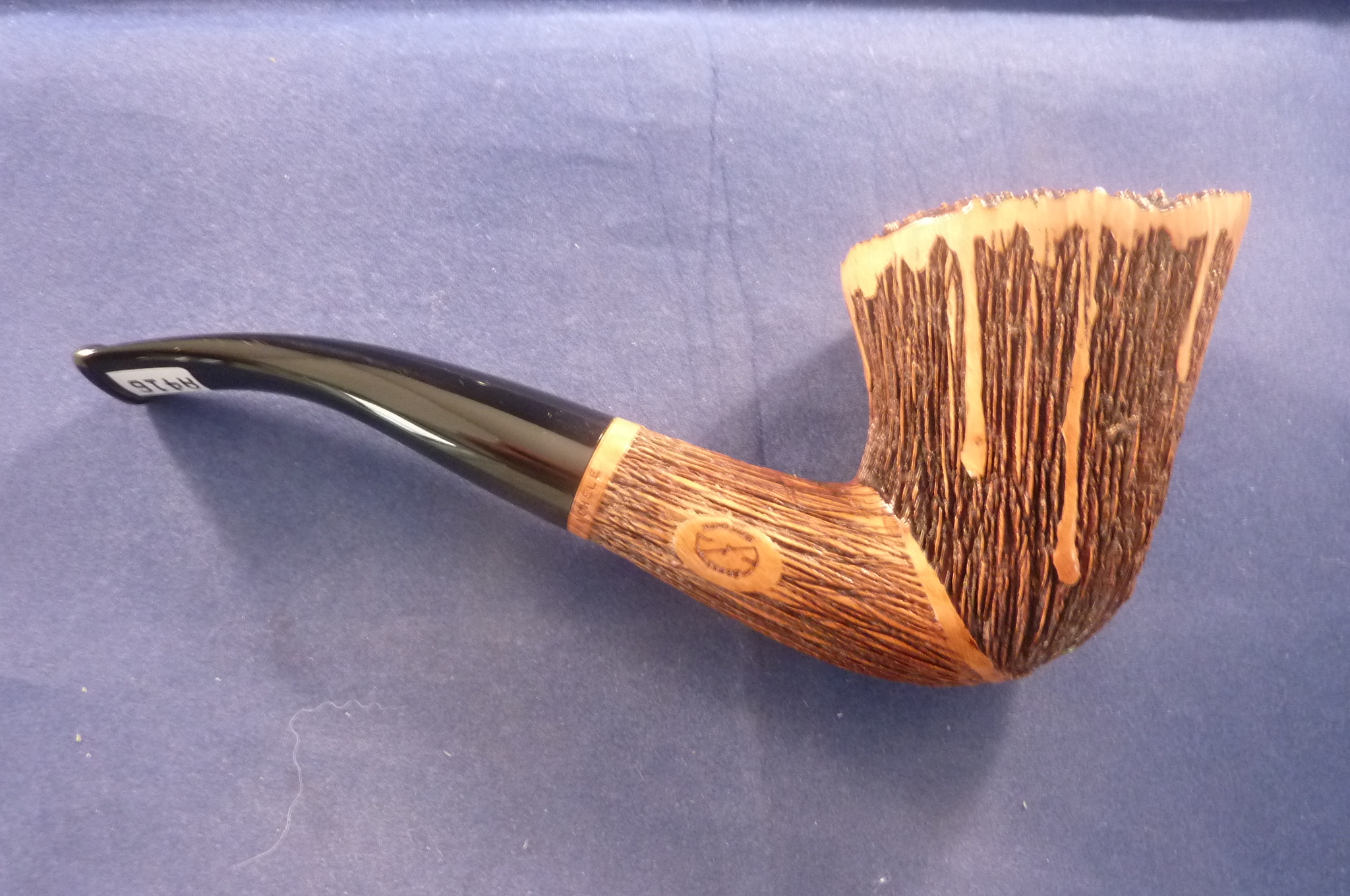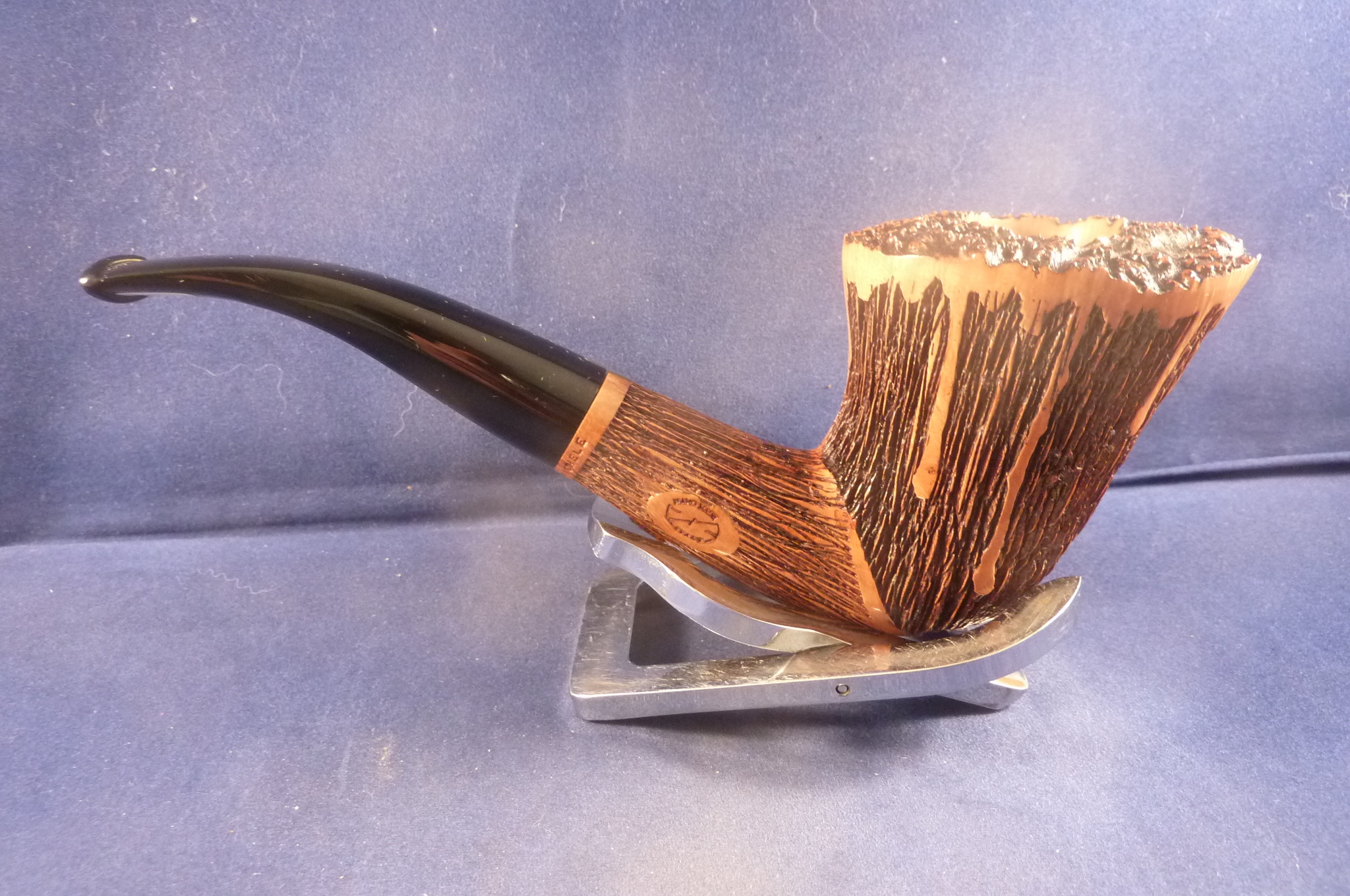 Sandblasted briar pipe handmade by Il Ceppo in Italy. This pipe is beautifully shaped and has a black acrylic mouthpiece.