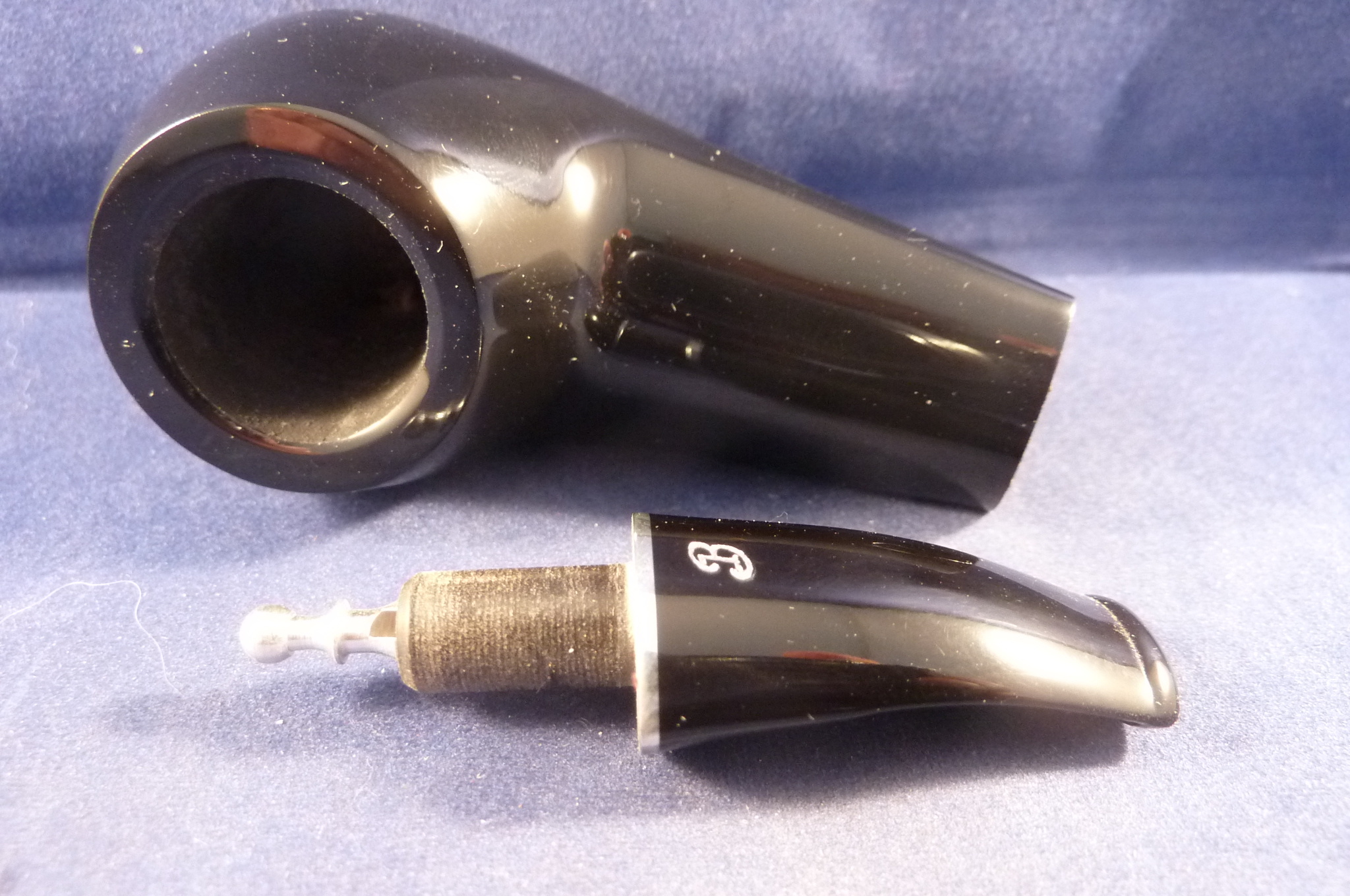 This is a brand new pipe made in Italy. This sandblasted briar pipe has an acrylic mouthpiece, without filter.