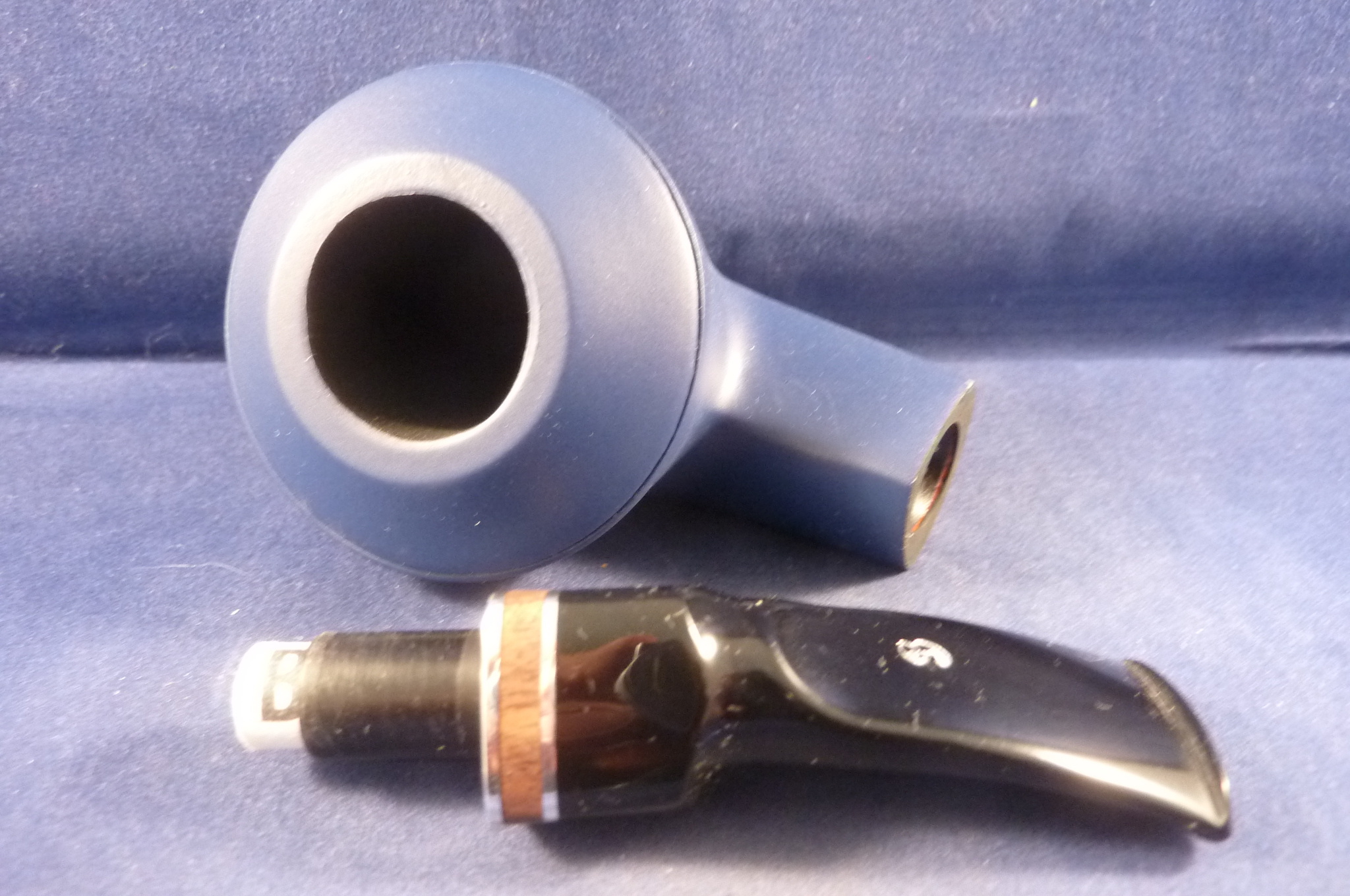 This is a brand new pipe made by Luigi Viprati in Italy. Beautiful hand made rusticated briar pipe. Blue marbled acrylic mouthpiece, 9 mm. filter.