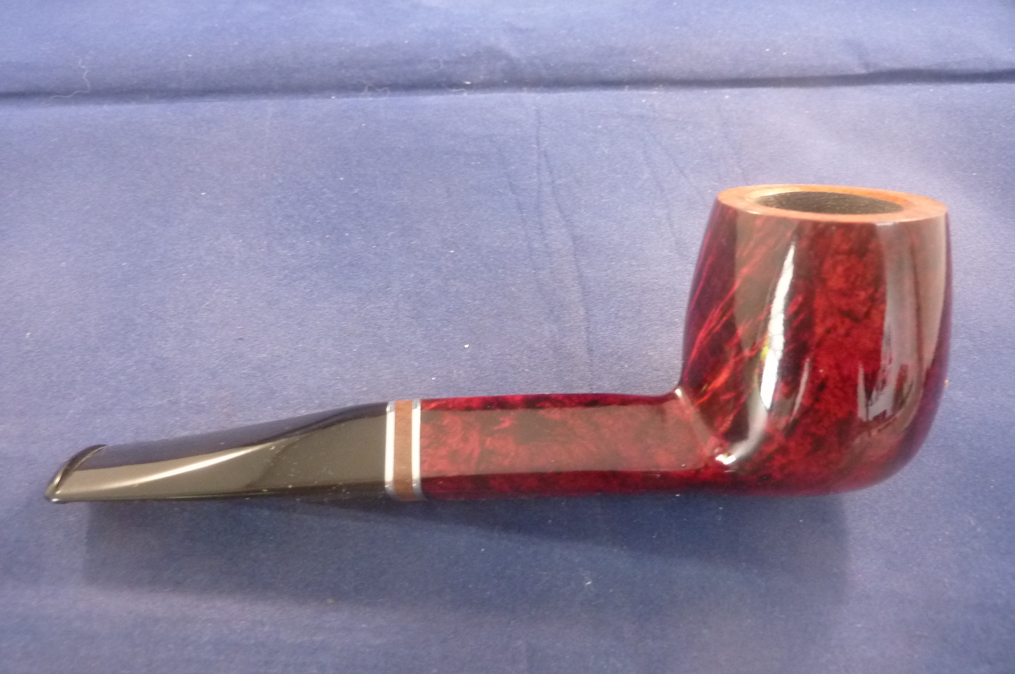 This is a brand new pipe made by L'Anatra in Italy. This Italian pipe has an elegant shape and a light brown finish and a sterling silver ring.