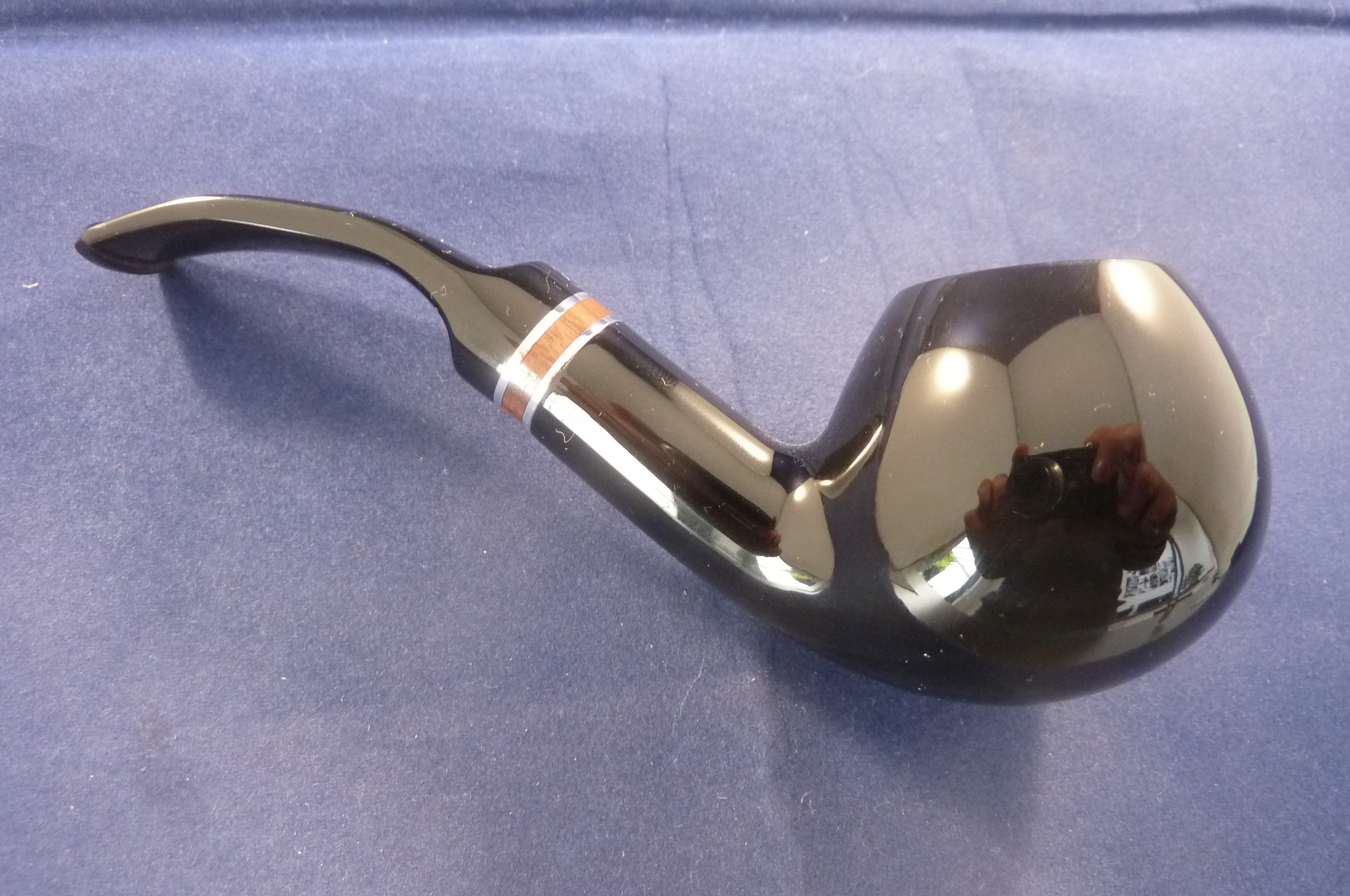 This is a brand new pipe made by L'Anatra in Italy. This Italian pipe has an elegant shape and a light brown finish and a sterling silver ring.