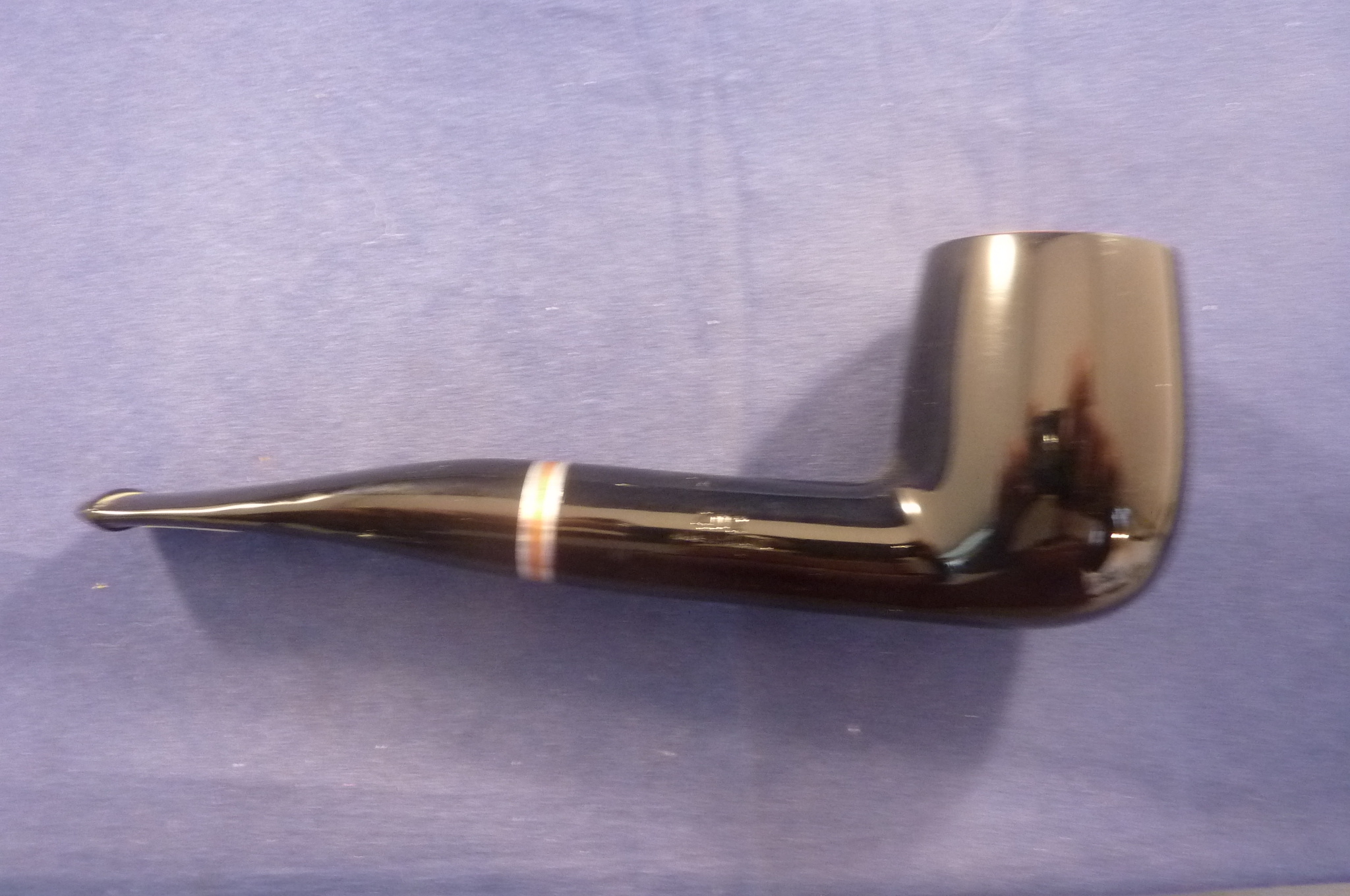 This is a brand new pipe made by L'Anatra in Italy. This Italian pipe has an elegant shape and a light brown finish and a sterling silver ring.