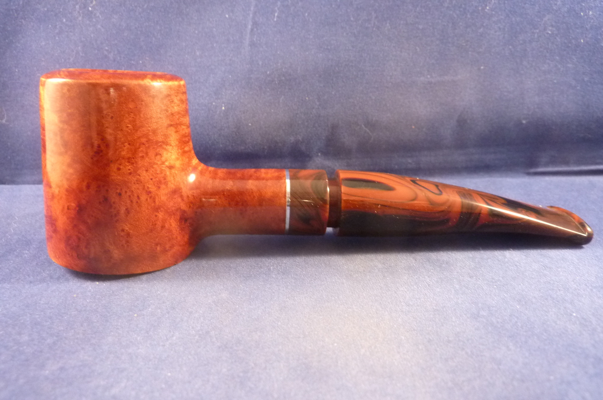 This is a brand new pipe made by Cesare Barontini in Italy. Beautiful briar pipe in an elegant shape. Marbled brown acrylic mouthpiece, 9 mm. filter.