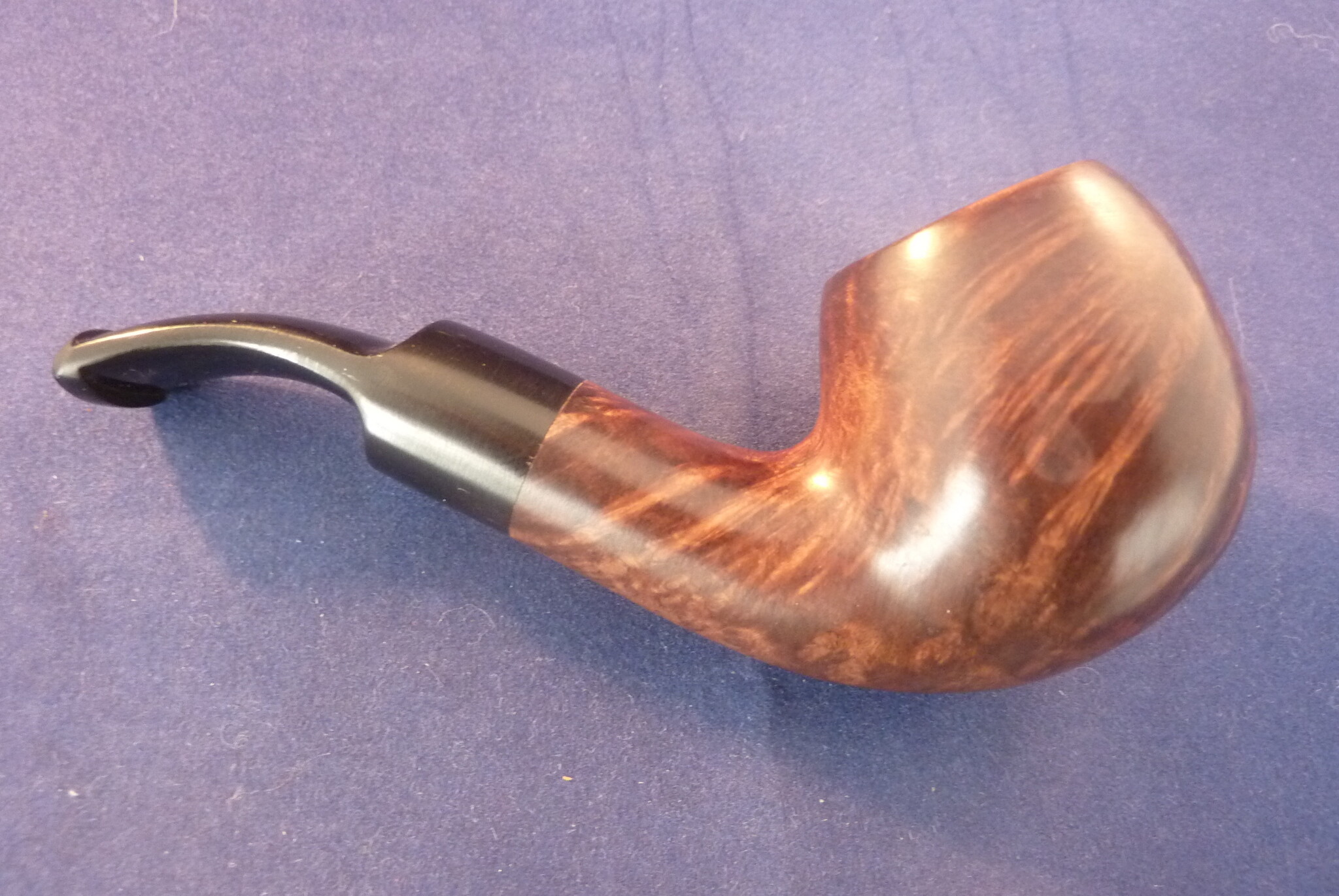 Smooth briar pipe in a light grey (almost white) finish with a carbon ring made by Vauen in Germany. Acrylic mouthpiece, 9 mm. filter. White dot quality.