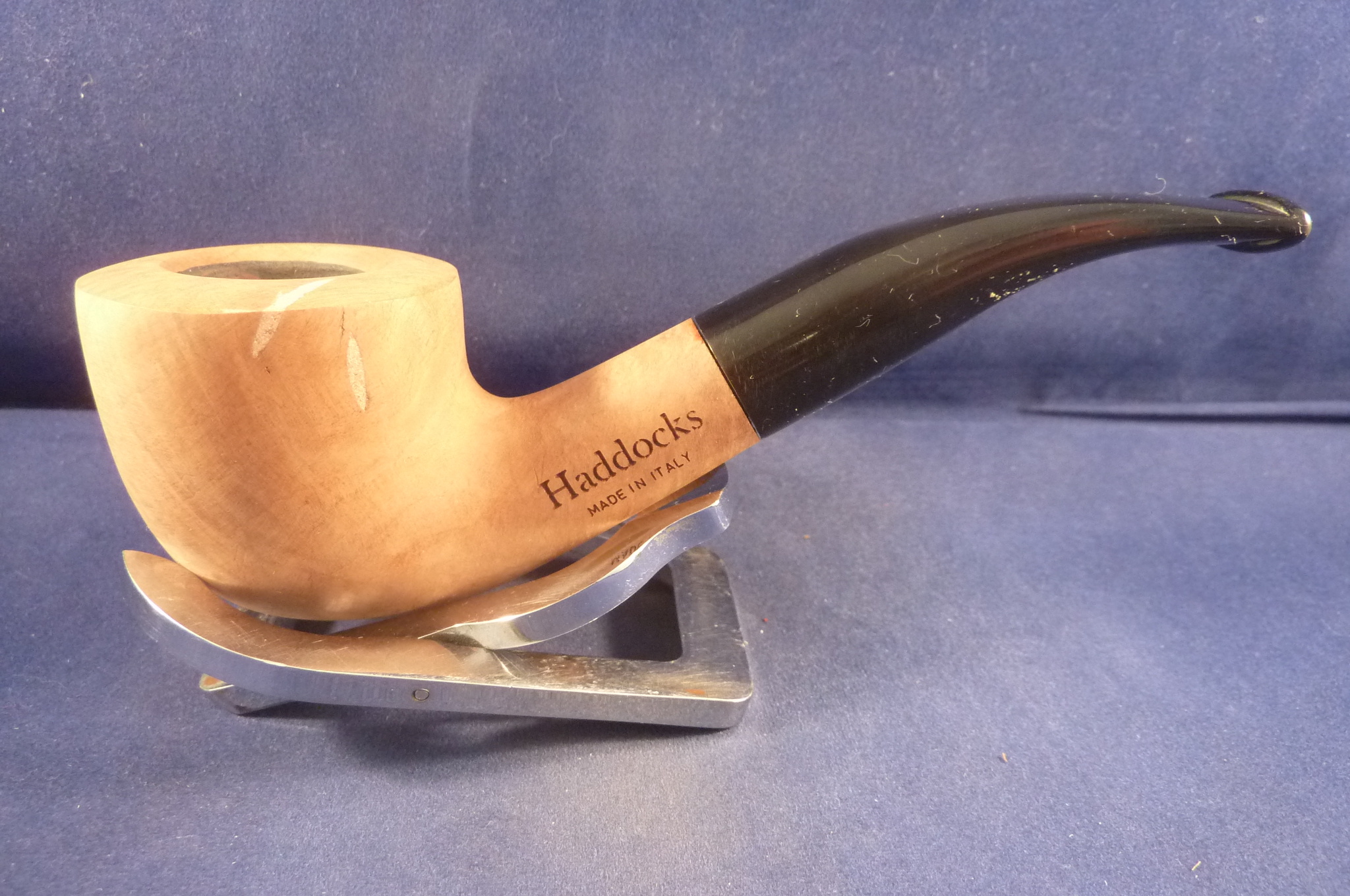 Smooth briar pipe in a natural finish made for Haddocks Pipeshop in Italy, acrylic mouthpiece, with 9 mm. filters.