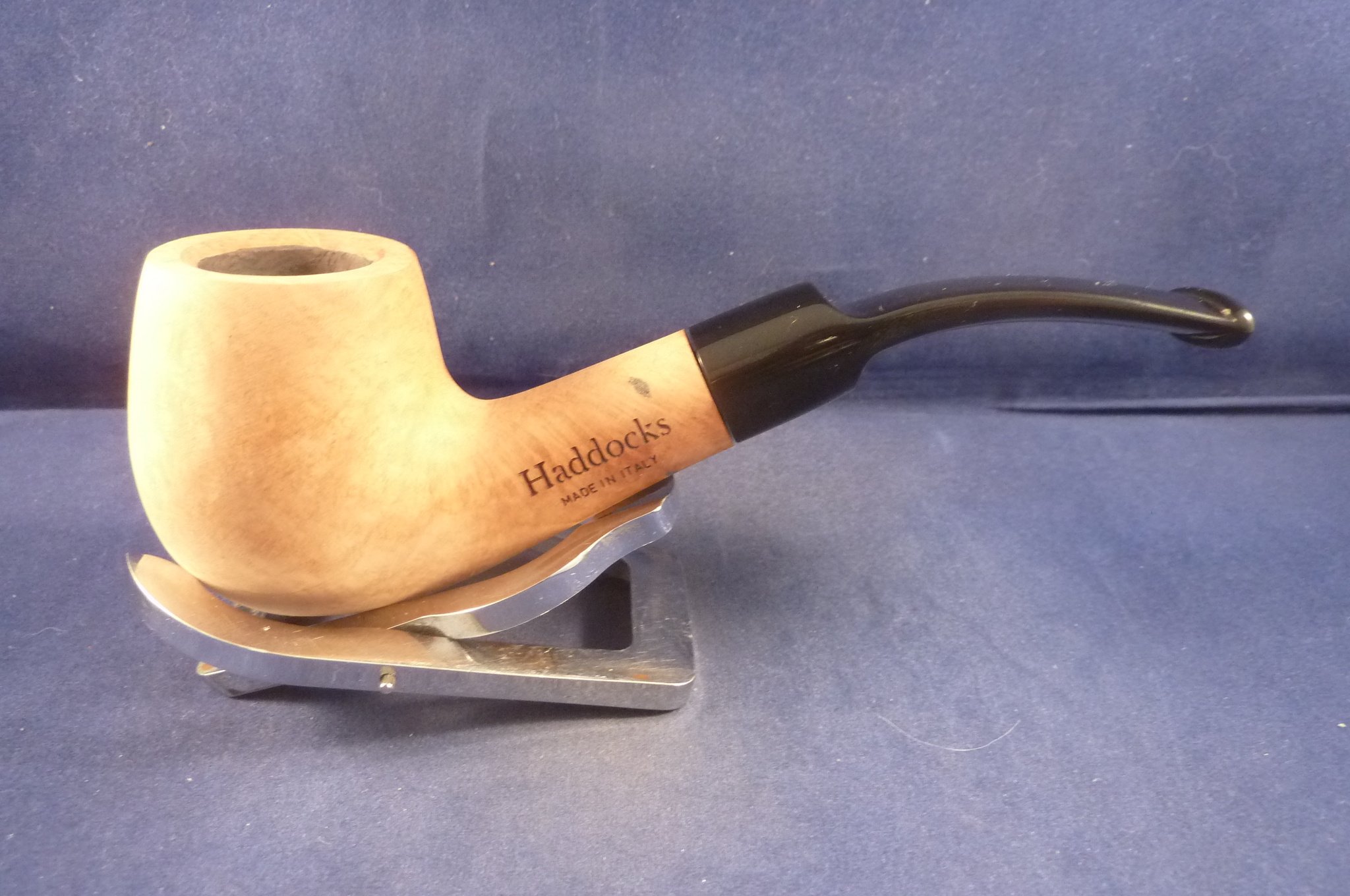 Smooth briar pipe in a natural finish made for Haddocks Pipeshop in Italy, acrylic mouthpiece, with 9 mm. filters.