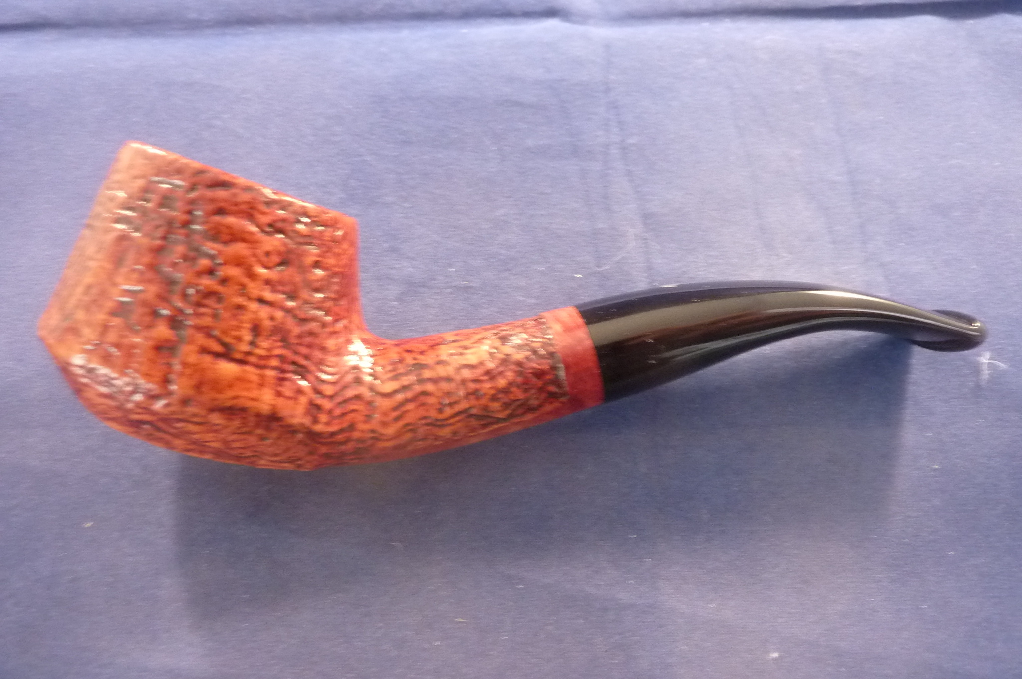 This is a brand new pipe made by L'Anatra in Italy. This Italian pipe has really great colours and has been beautiful sandblasted. Acrylic mouthpiece, with 9 mm. filter.