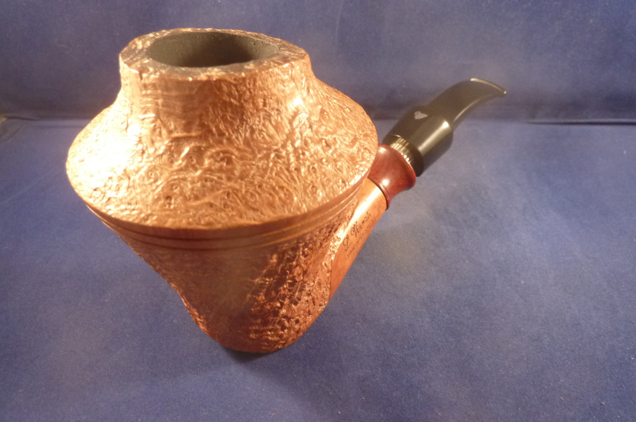 Giant briar pipe in a sandblasted brown finish made by Luigi Viprati in Italy. Acrylic mouthpiece, 9 mm. filter.