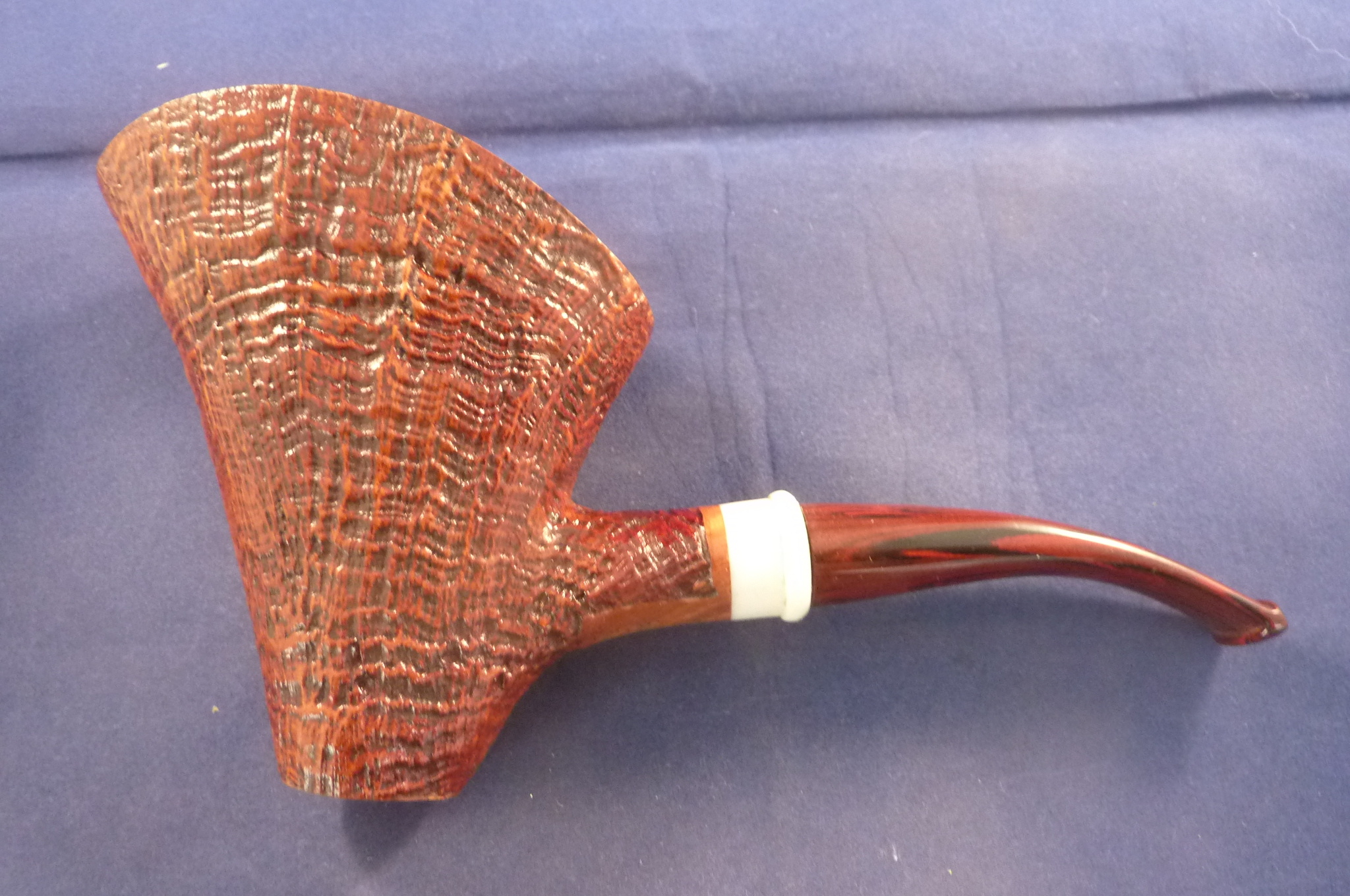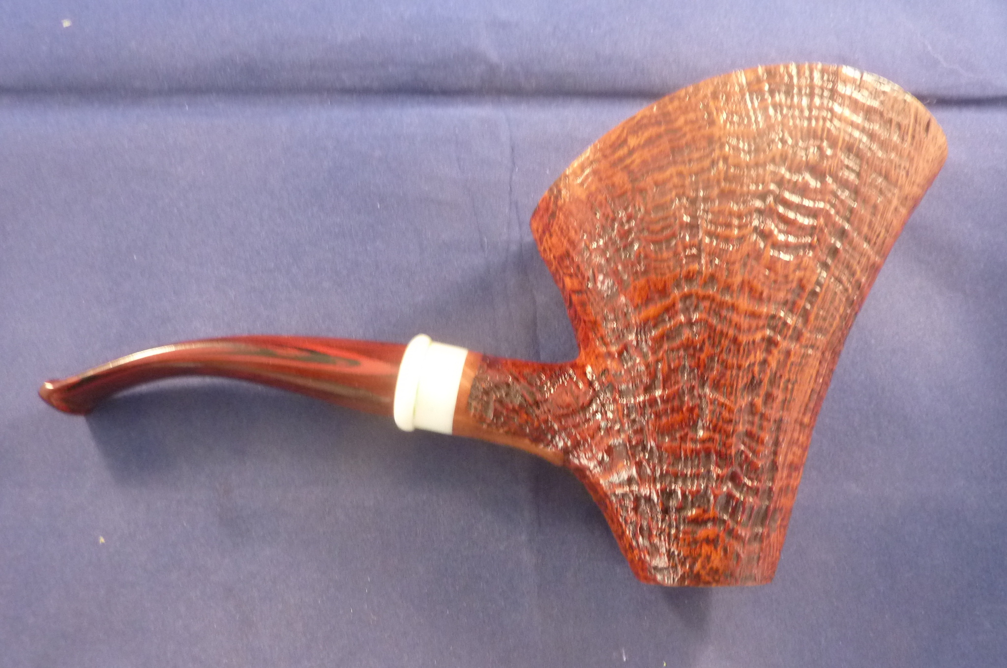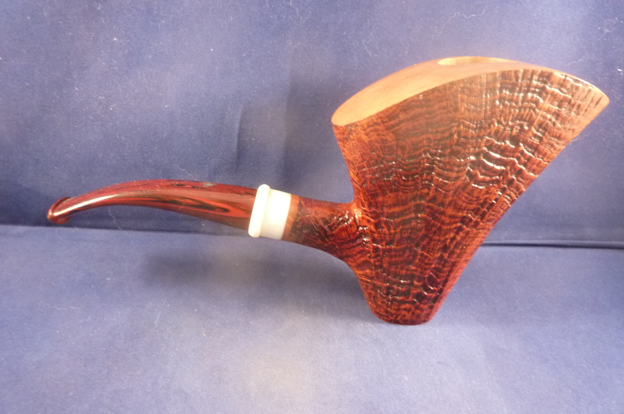 Giant briar pipe in a sandblasted brown finish made by Luigi Viprati in Italy. Acrylic mouthpiece, 9 mm. filter.