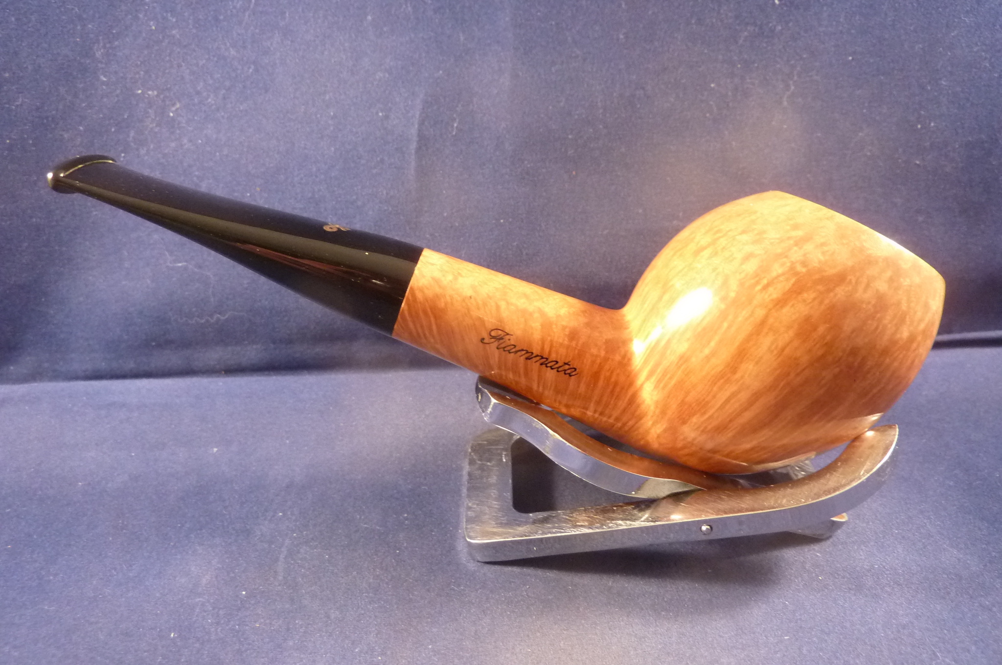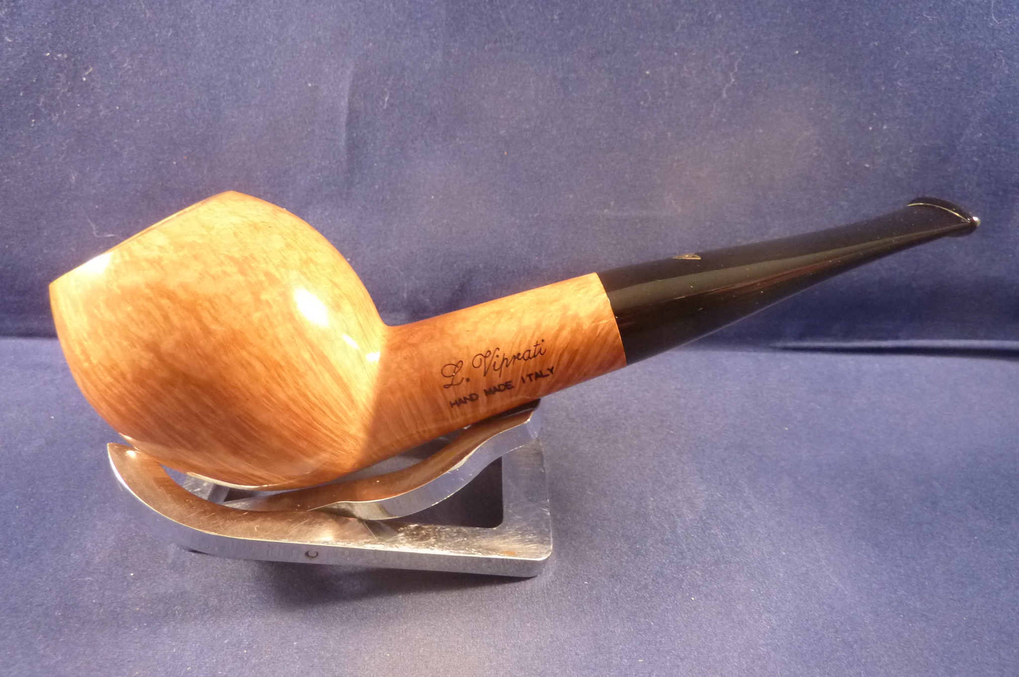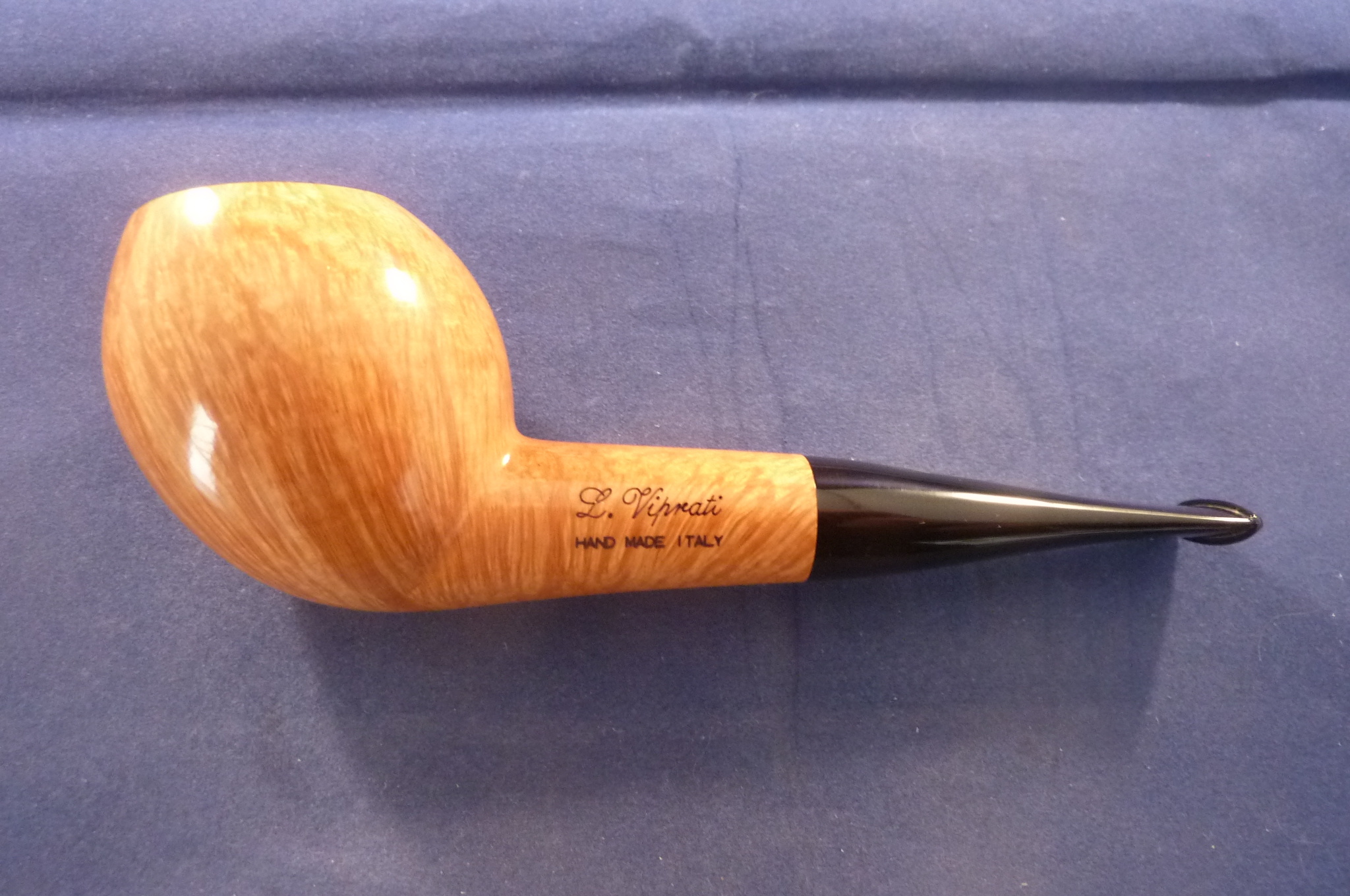 Beautiful briar pipe in a natural finish with straight grains made by Luigi Viprati in Italy. Acrylic mouthpiece, 9 mm. filter.