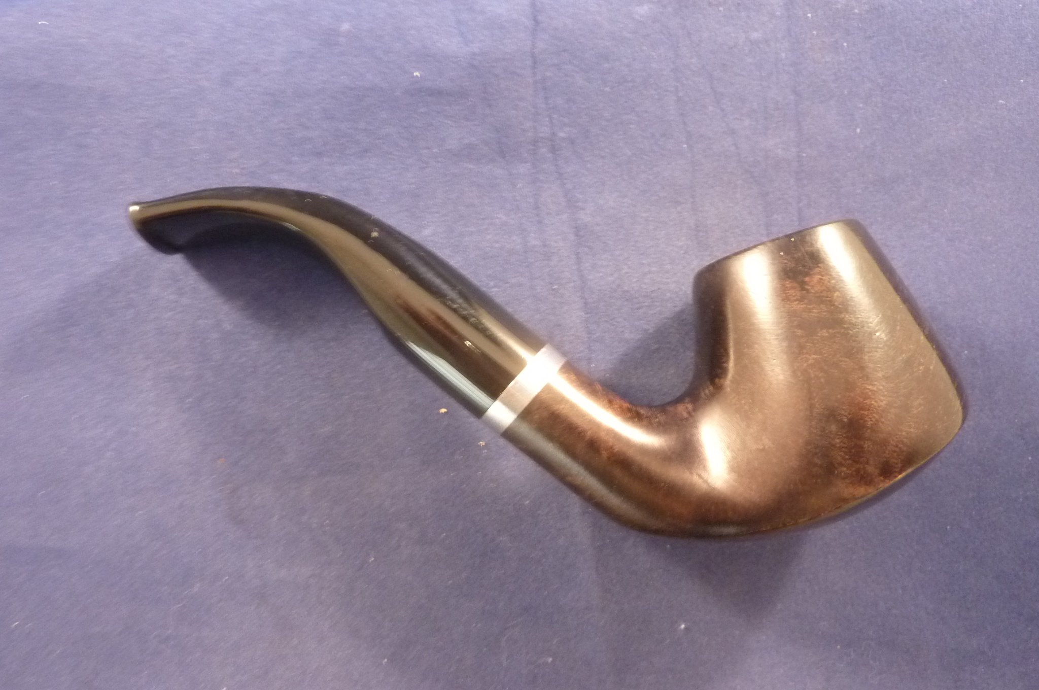 Beautiful Irish briar pipe with sterling silver applications. This black pipe has a beautiful shape. Fishtail mouthpiece, without filter.