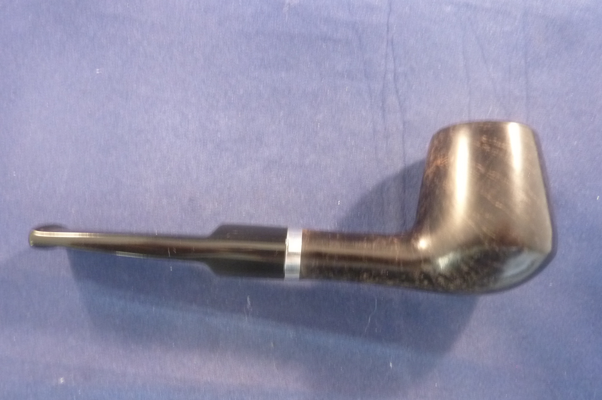 Beautiful Irish briar pipe with sterling silver applications. This black pipe has a beautiful shape. Fishtail mouthpiece, without filter.