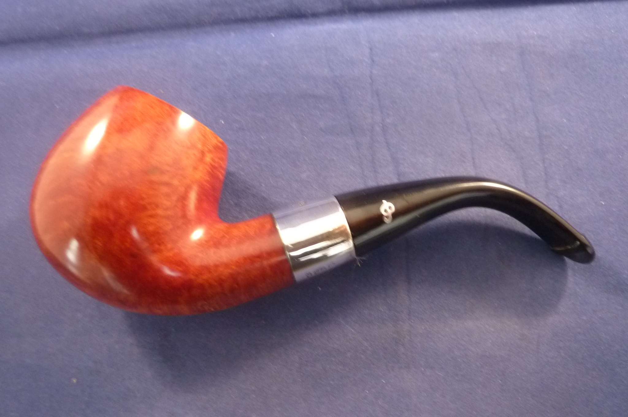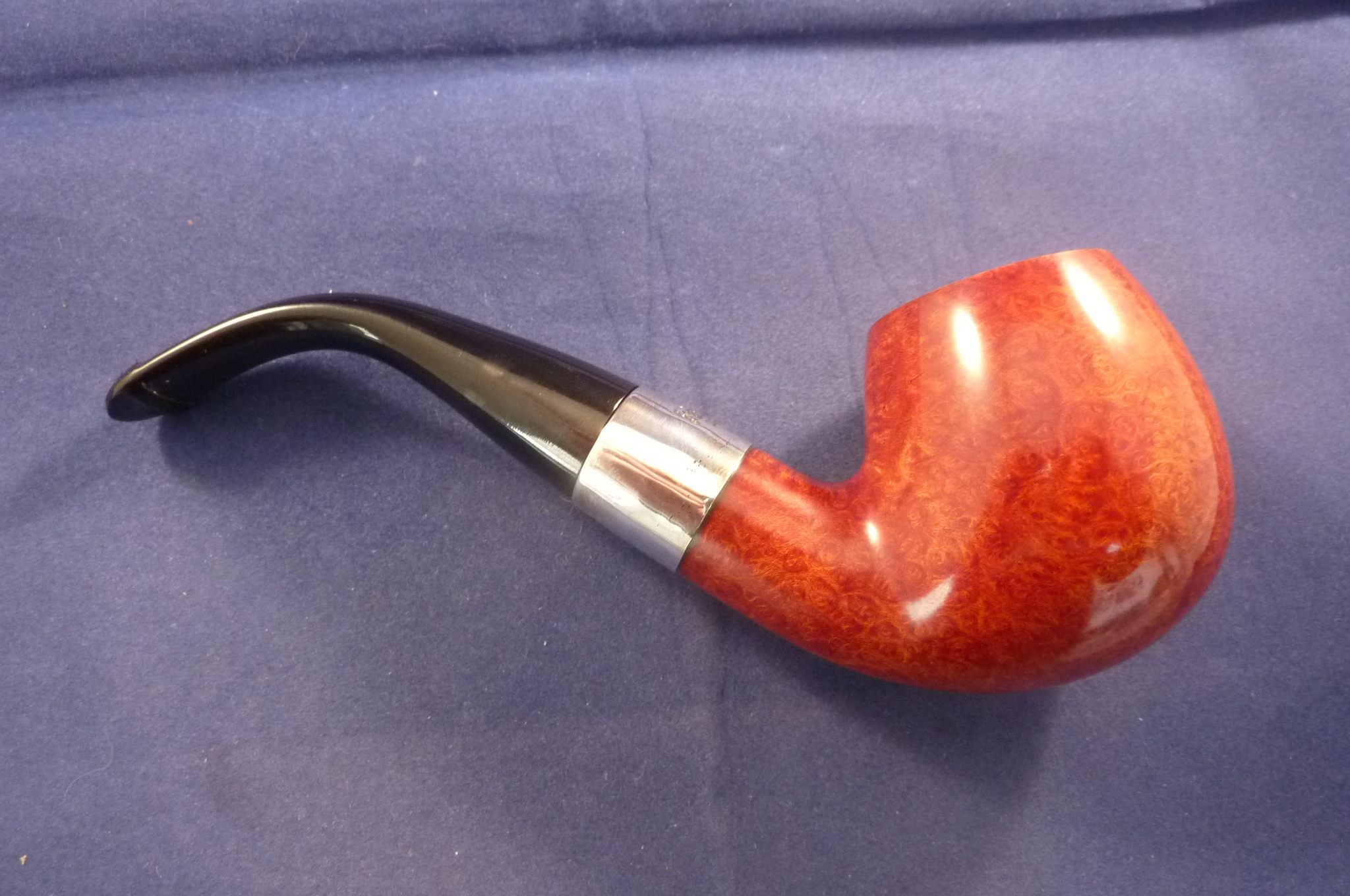 Beautiful Irish briar pipe in a terracotta finish with a sterling silver ring. P-Lip mouthpiece with 9 mm. filter.