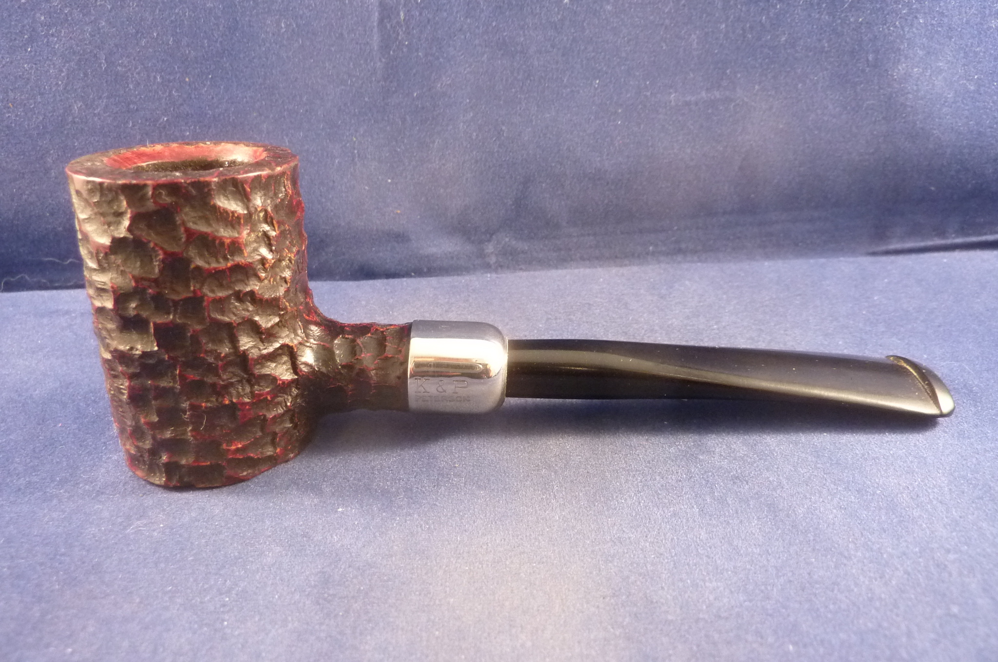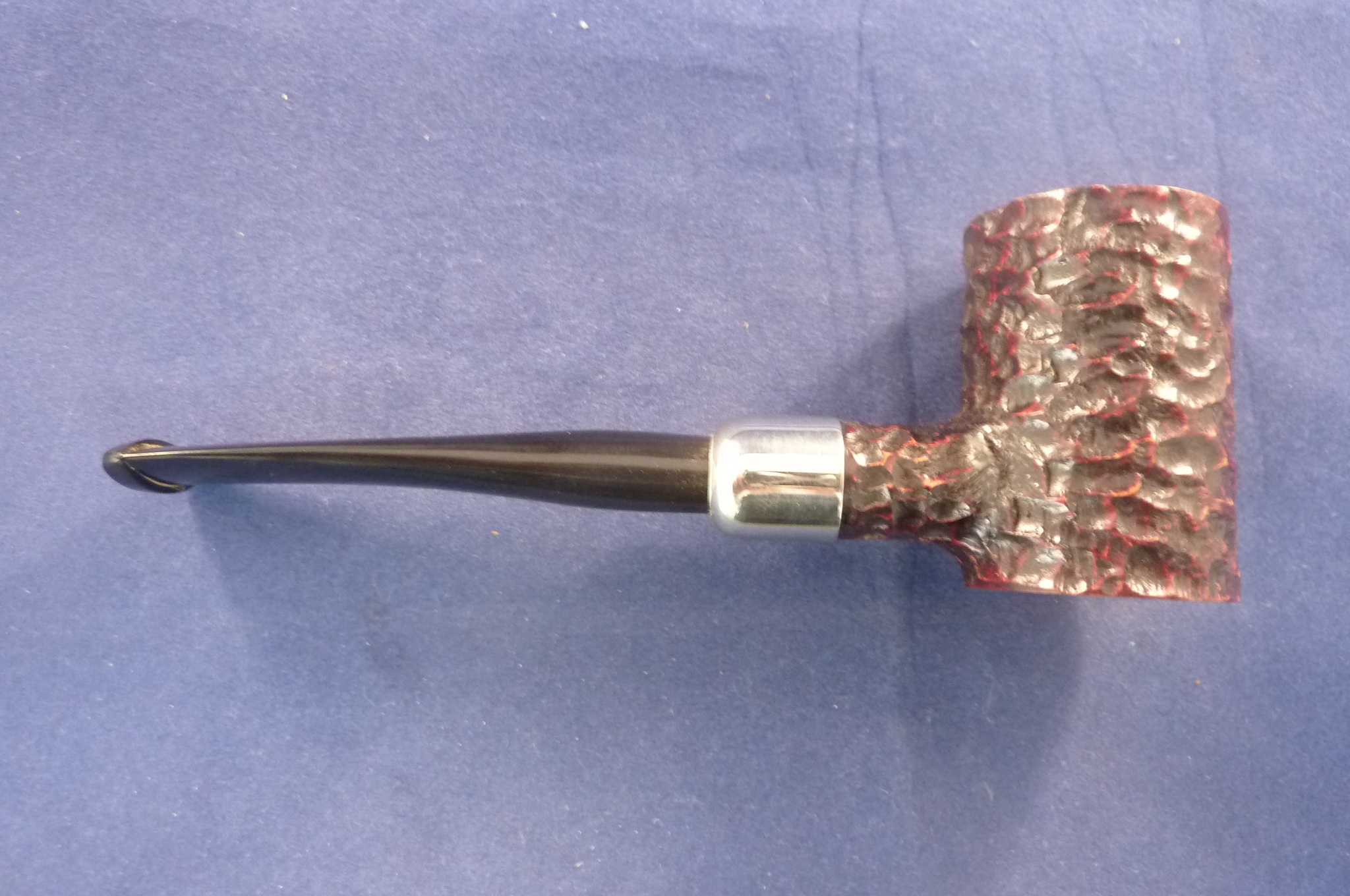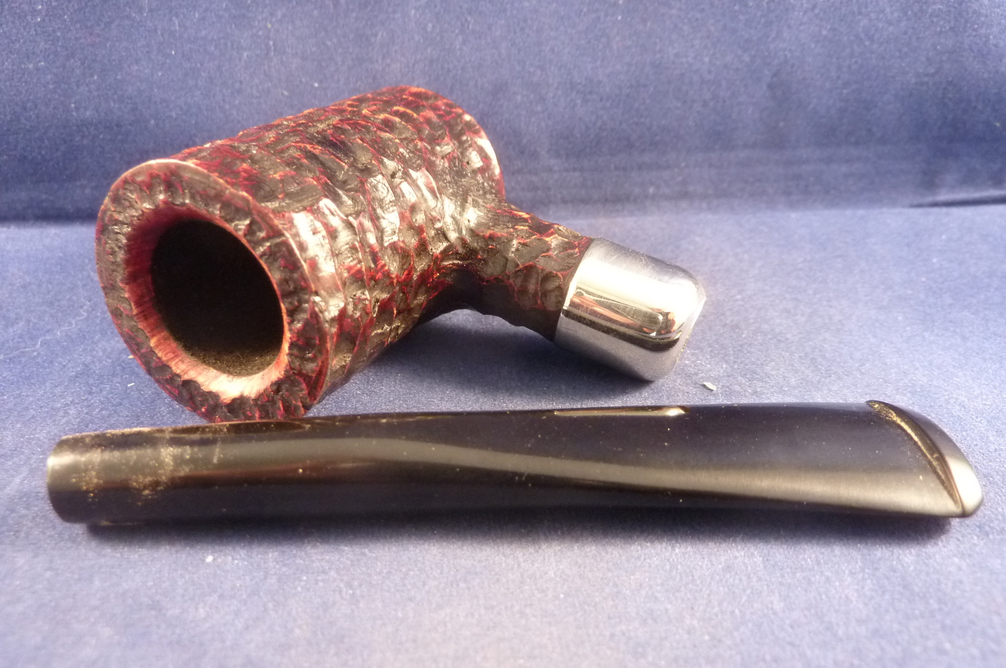 Beautiful briar pipe in a rusticated finish with a nickel mount, made by Peterson in Ireland. The pipe has a black fishtail mouthpiece, without filter.