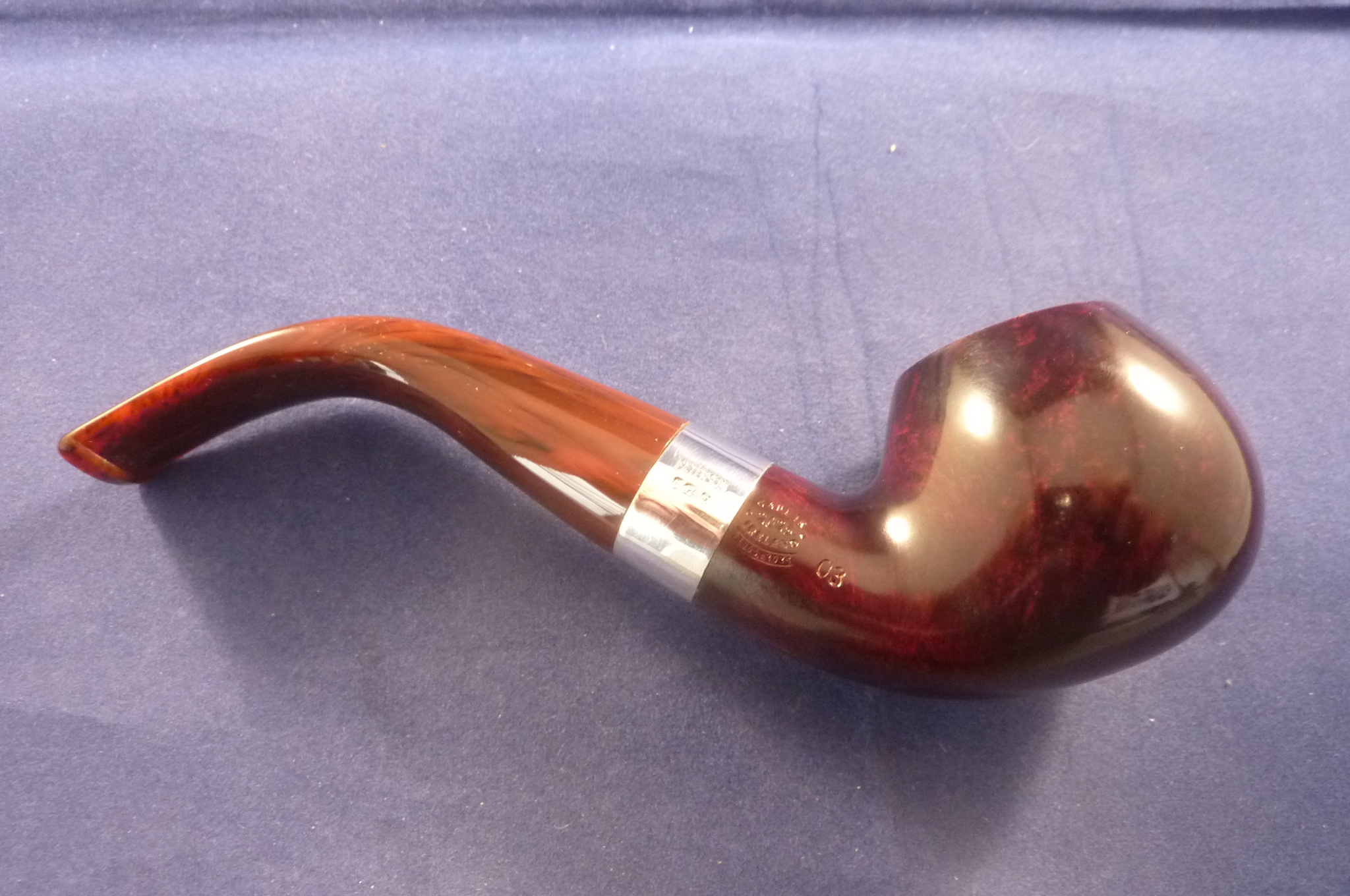 Beautiful Irish briar pipe with sterling silver applications. This black pipe has a beautiful shape. Fishtail mouthpiece, without filter.