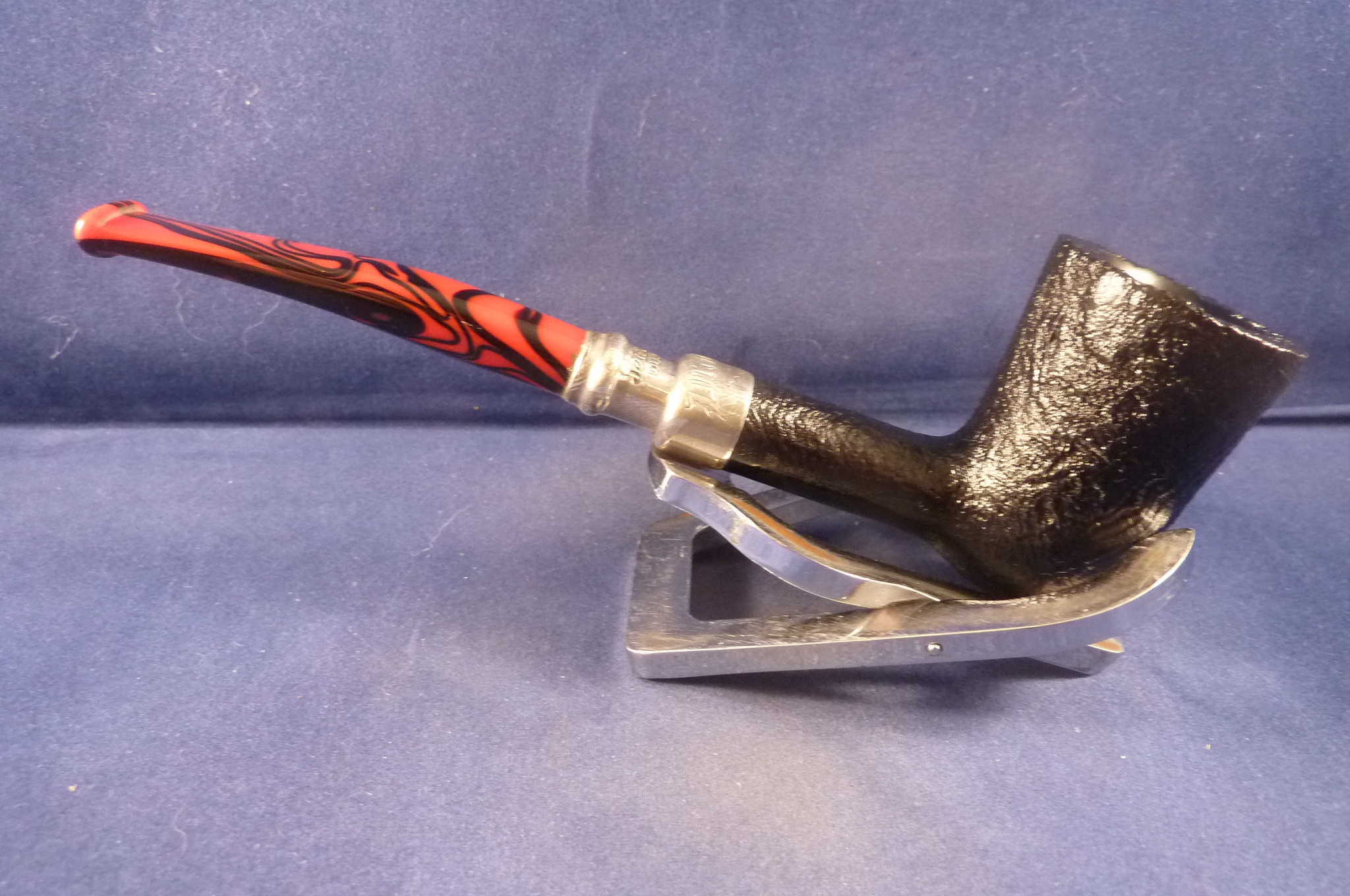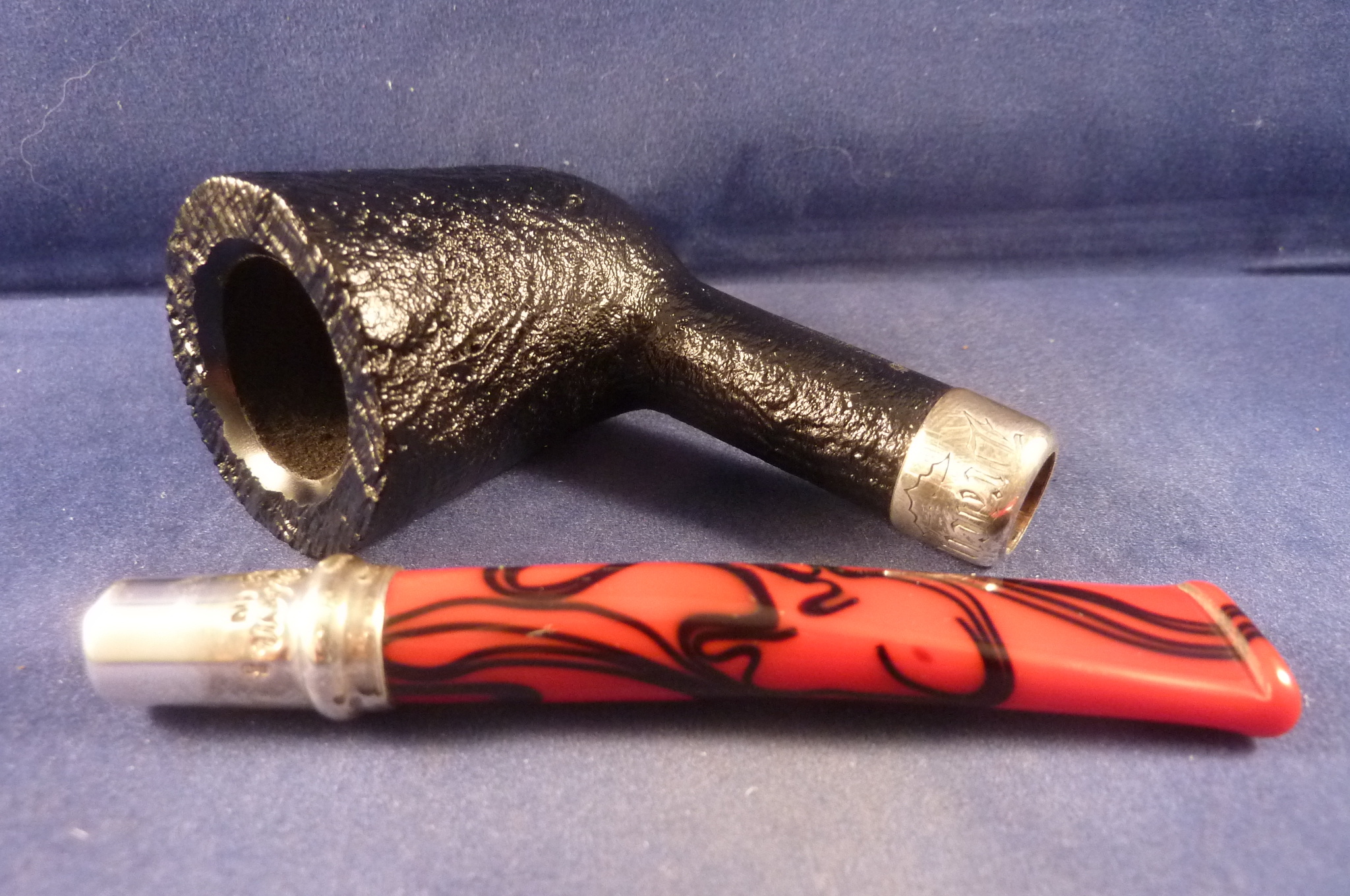 Beautiful Irish briar pipe with sterling silver applications. This black pipe has a beautiful shape. Fishtail mouthpiece, without filter.