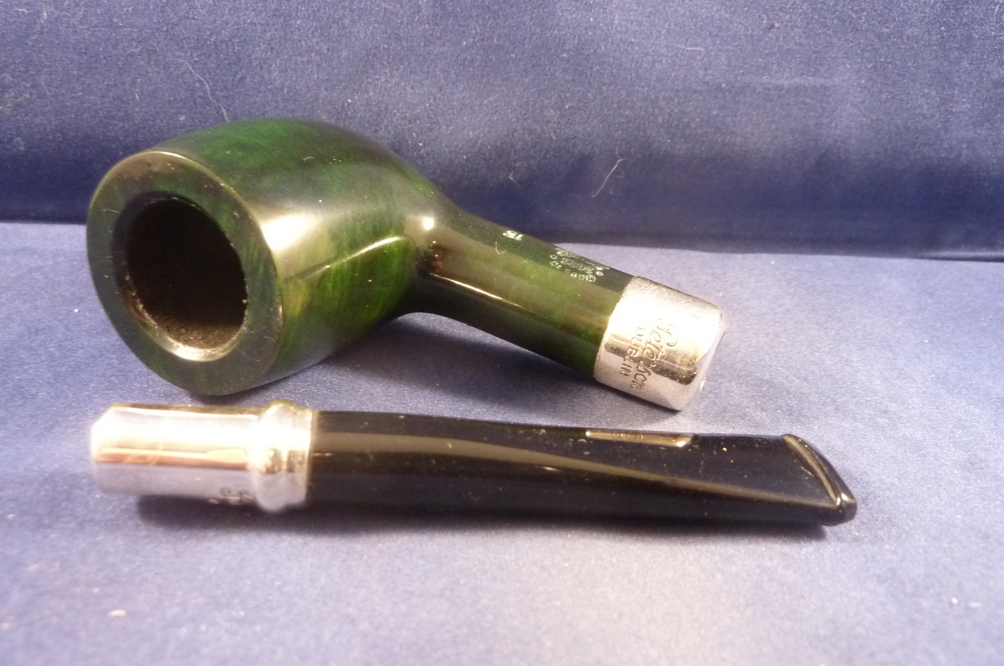 Beautiful Irish briar pipe with sterling silver applications. This black pipe has a beautiful shape. Fishtail mouthpiece, without filter.