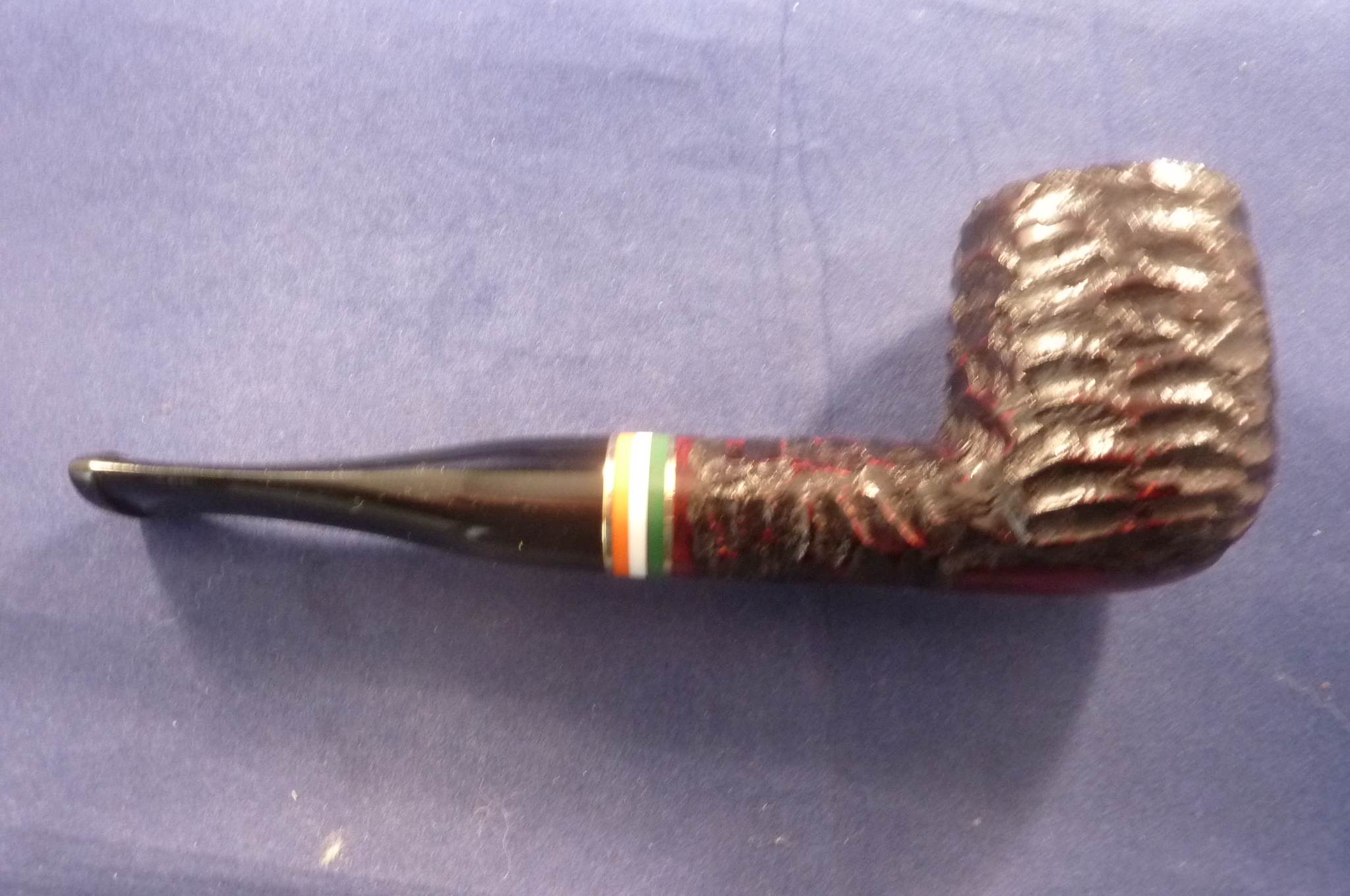This is a brand new pipe made in Italy. This sandblasted briar pipe has an acrylic mouthpiece, without filter.