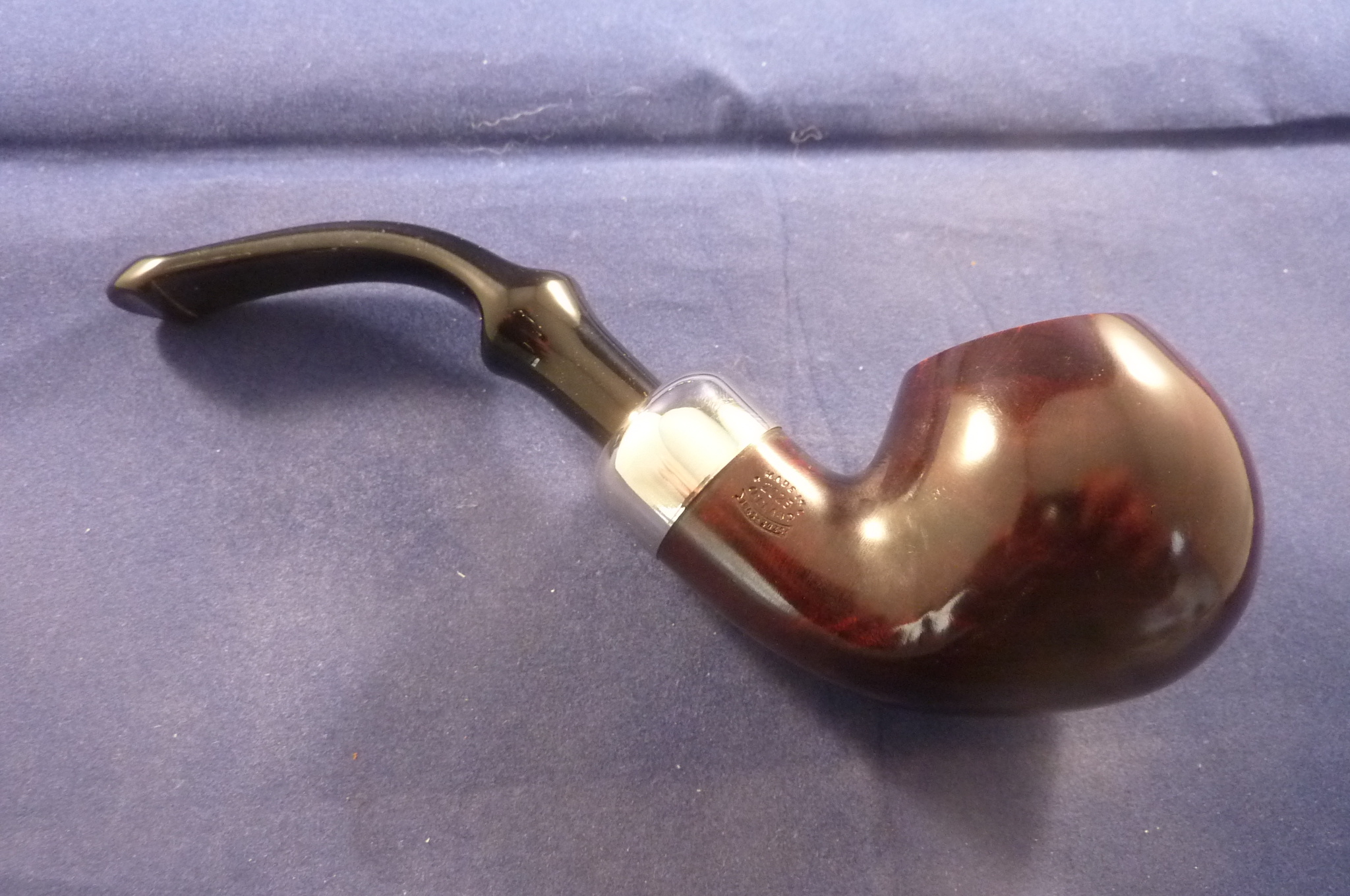 A high quality briar pipe. Specially selected fine quality bowls mounted with a hallmarked nickel band and an army style mouthpiece. P-Lip mouthpiece, with 9 mm. filter.
