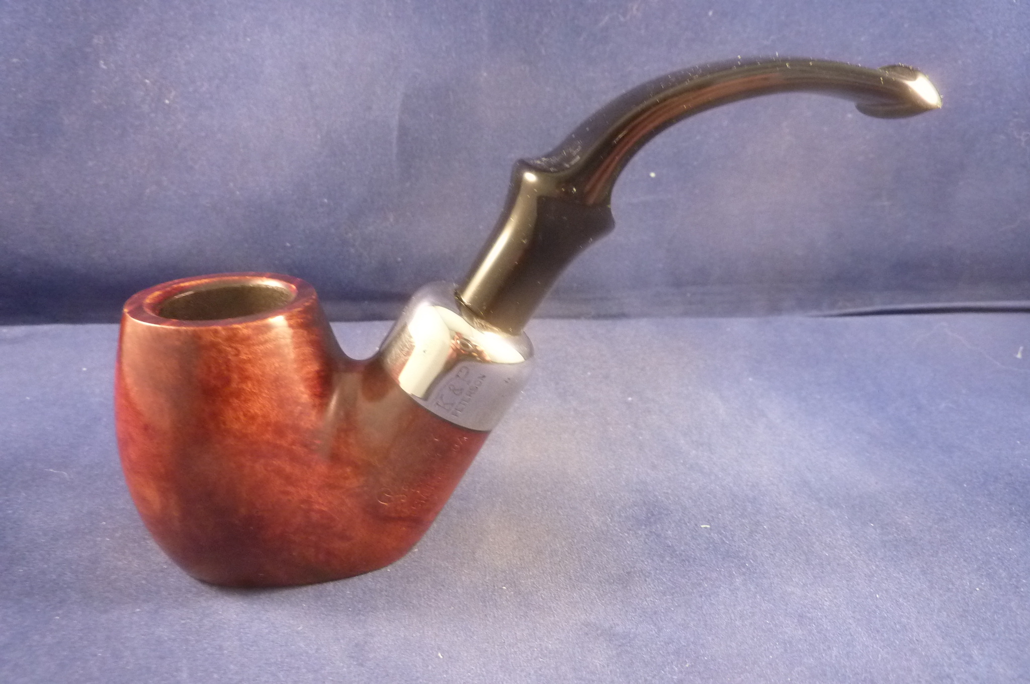 A high quality briar pipe. Specially selected fine quality bowls mounted with a hallmarked nickel band and an army style mouthpiece. P-Lip mouthpiece, with 9 mm. filter.