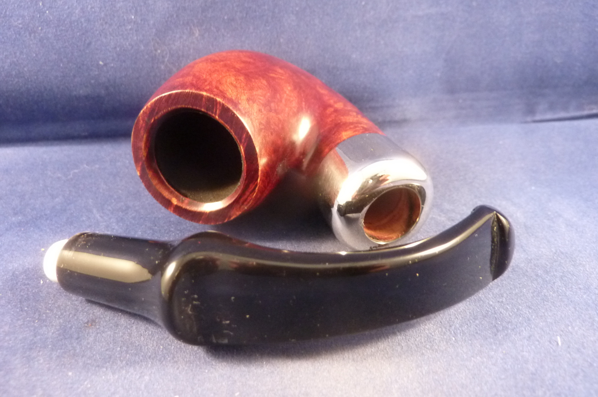 This is a brand new briar pipe in a light finish made by L'Anatra in Italy. This Italian pipe has really great colours and grains. Acrylic mouthpiece, 9 mm. filter.
