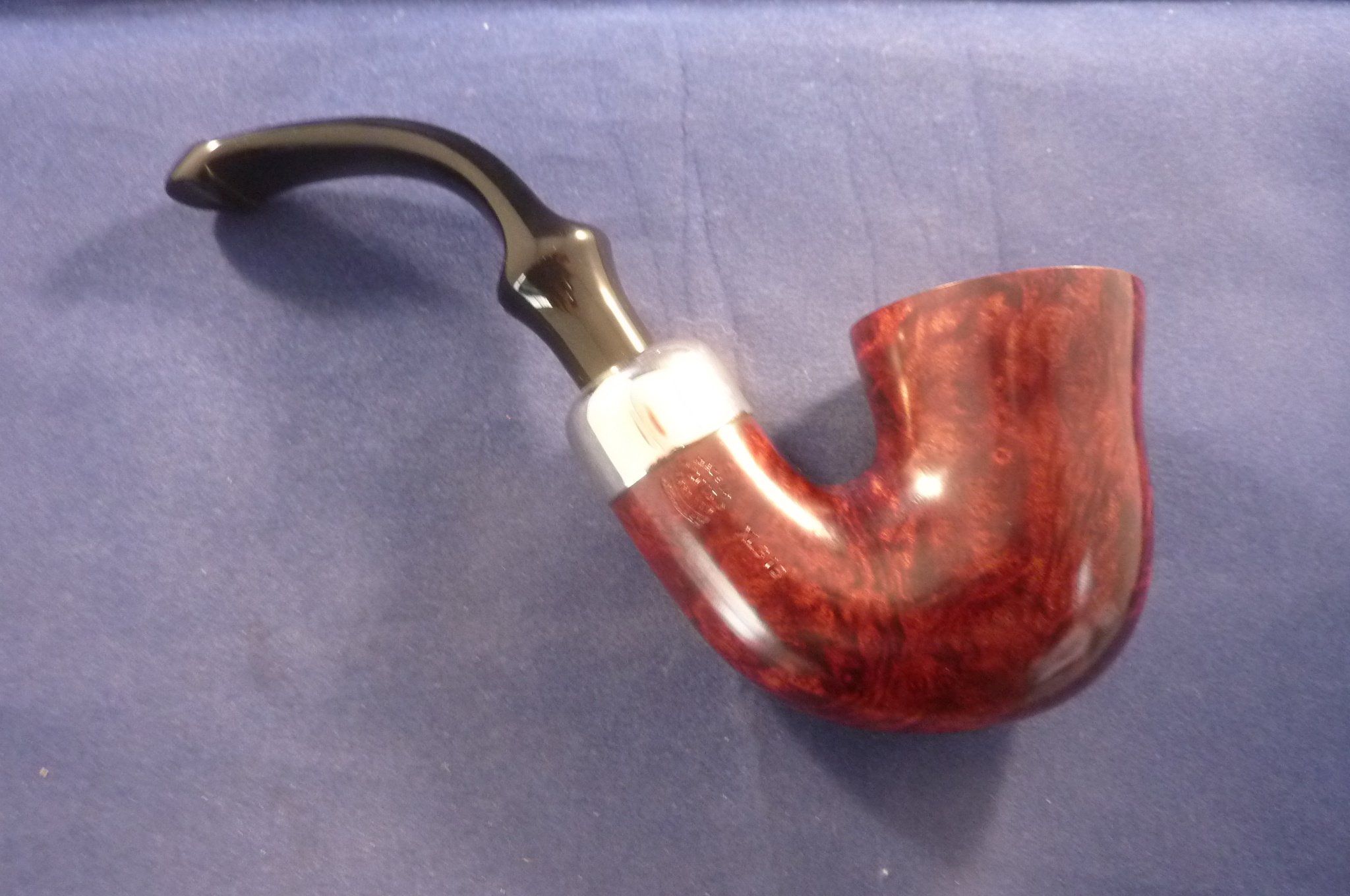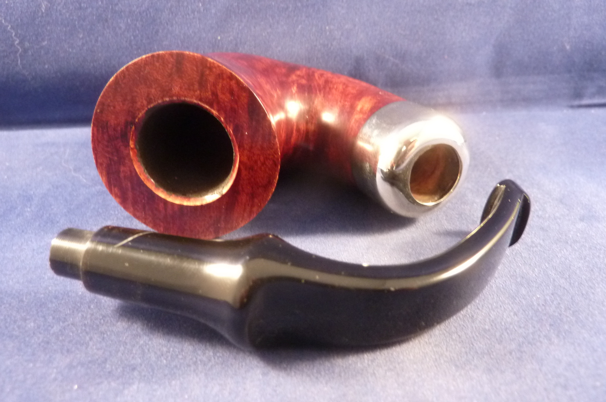 A high quality briar pipe. Specially selected fine quality bowls mounted with a hallmarked nickel band and an army style mouthpiece. P-Lip mouthpiece, without filter.
