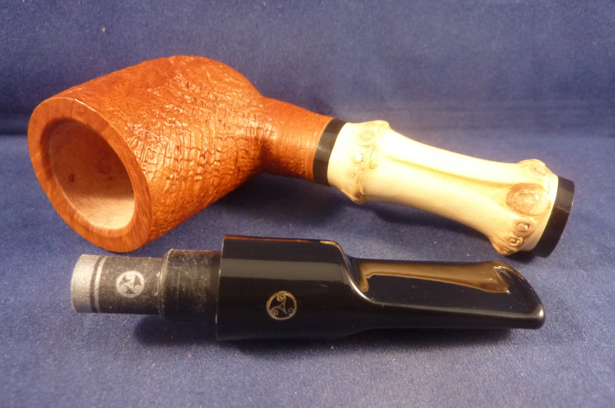 Elegant briar pipe with a bamboo application made for Rattray's. Acrylic mouthpiece, 9 mm. filter.
