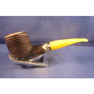 Sandblasted pipe made of larch wood with a briar insert and on twisted brass ring made by Vauen in Germany. Acrylic yellow mouthpiece, 9 mm. filter. White dot quality.
