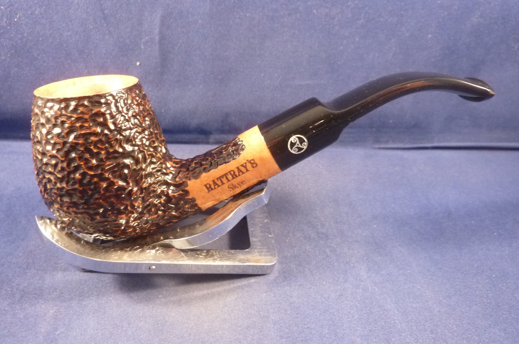 Rusticated briar pipe made for Rattray's. Black acrylic mouthpiece, 9 mm. filter.