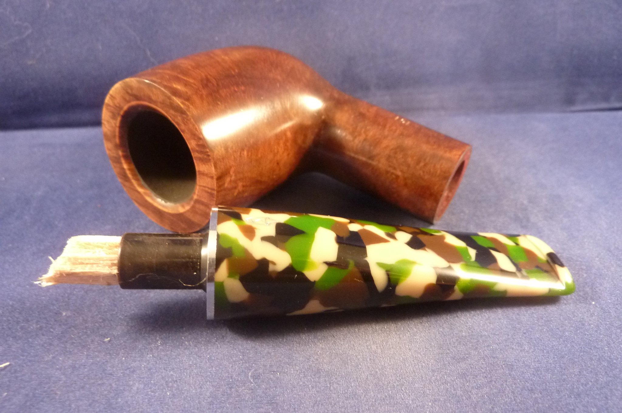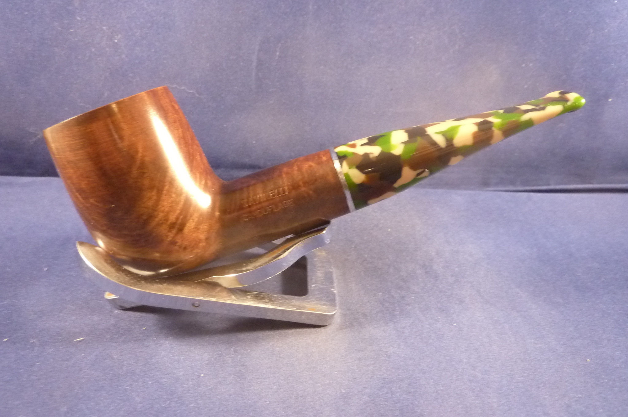 Original briar pipe made by Savinelli in Italy. This pipe is made of high quality briar. Acrylic mouthpiece with camouflage patterns, 9 mm. filters or you can use the famous Balsa system.
