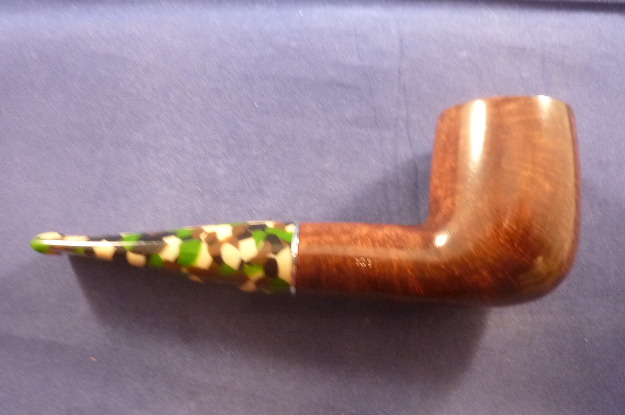 This is a brand new briar pipe made by Aldo Velani in Italy. Acrylic mouthpiece, 9 mm. filter.