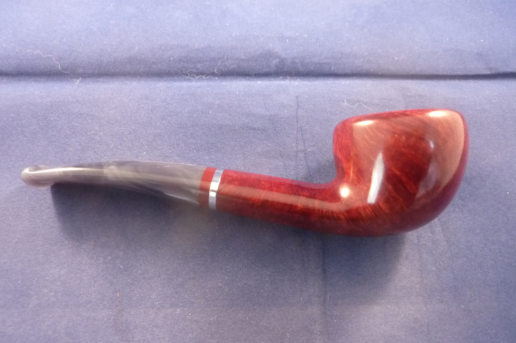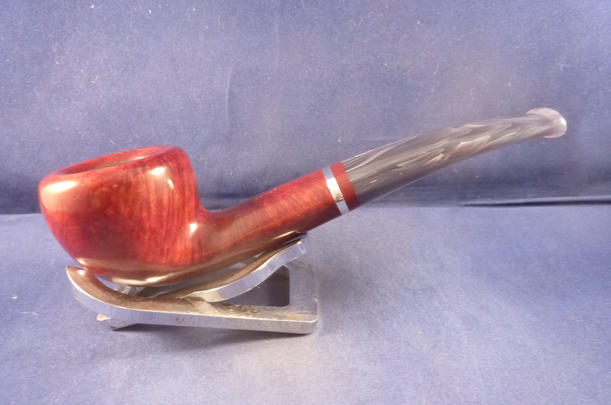 Italian briar pipe in a bordeaux colour made by Savinelli. Acrylic marbled mouthpiece. This pipe is made of high quality briar. 9 mm. filters or you can use the famous Balsa system.