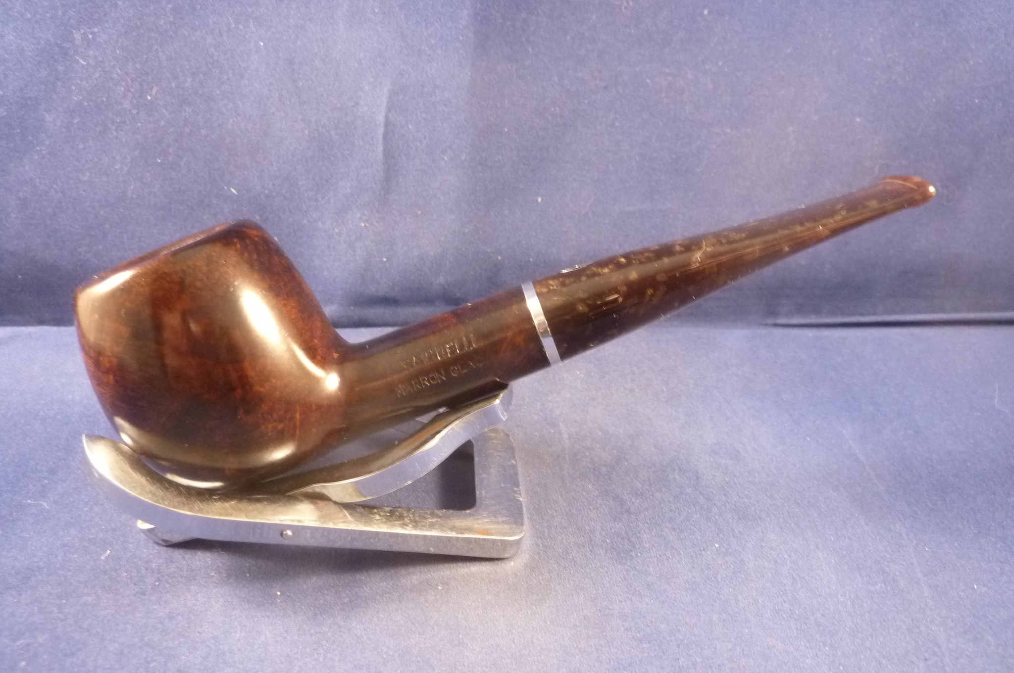 A high quality briar pipe. Specially selected fine quality bowls mounted with a hallmarked nickel band and an army style mouthpiece. P-Lip mouthpiece, without filter.