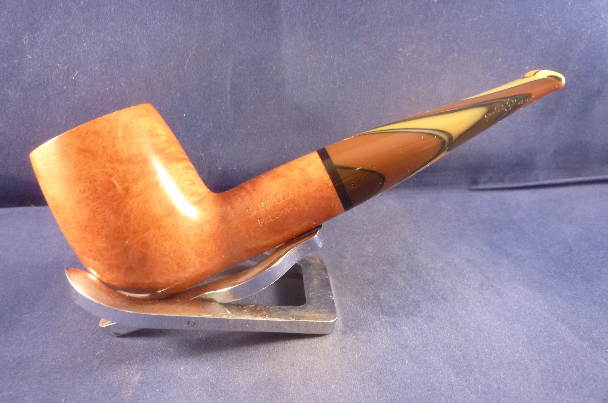 Beautiful briar pipe in a natural finish made by Savinelli in Italy. Acrylic mouthpiece, 9 mm. filters or you can use the famous Balsa system.