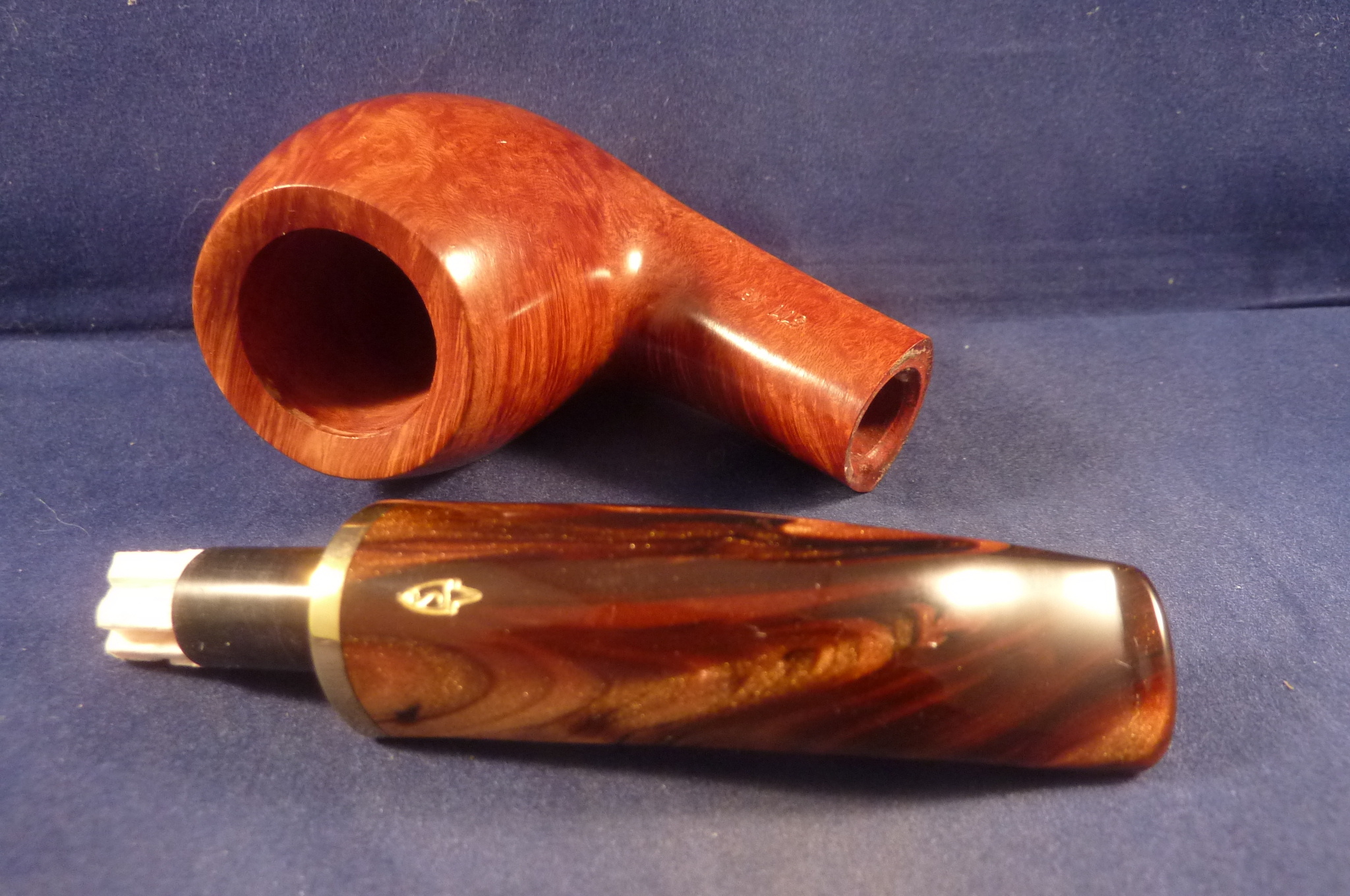 This is a brand new pipe made by L'Anatra in Italy. This Italian pipe has the perfect shape. Acrylic mouthpiece, with 9 mm. filter.