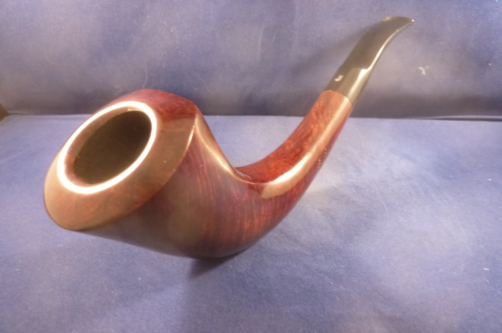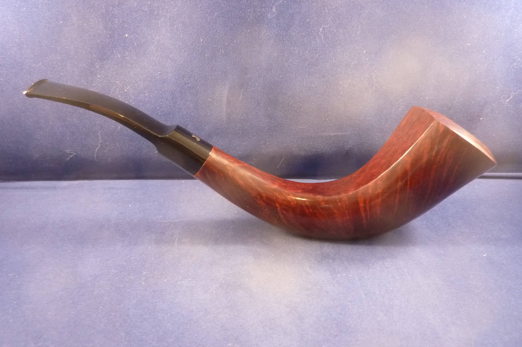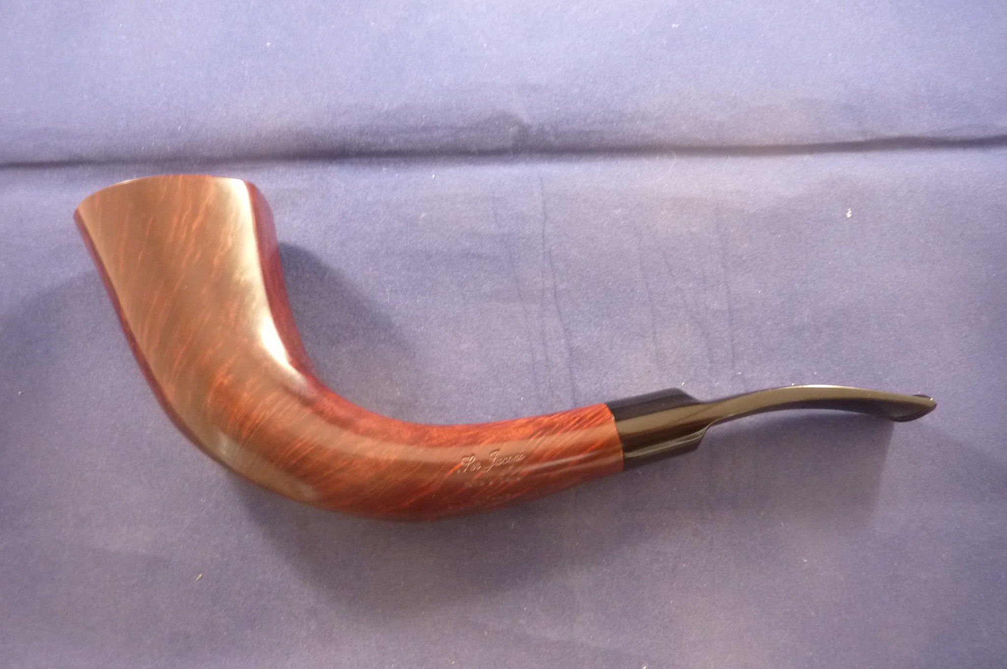 This is a brand new pipe made by Ser Jacopo in Italy. This company has some fine craftsmen, which produce beautiful handmade pipes with great designs and shapes. This smooth briar pipe has an elegant shape. Black mouthpiece, 9 mm. filter.