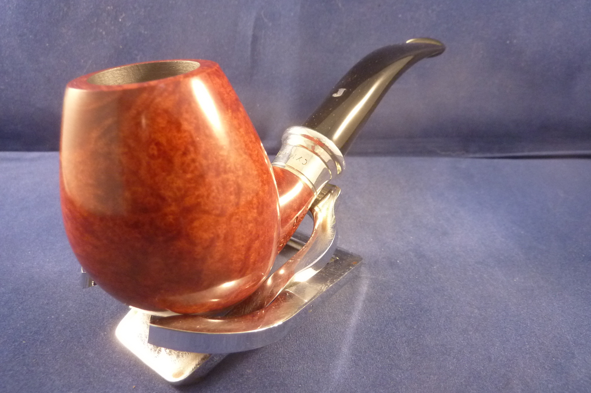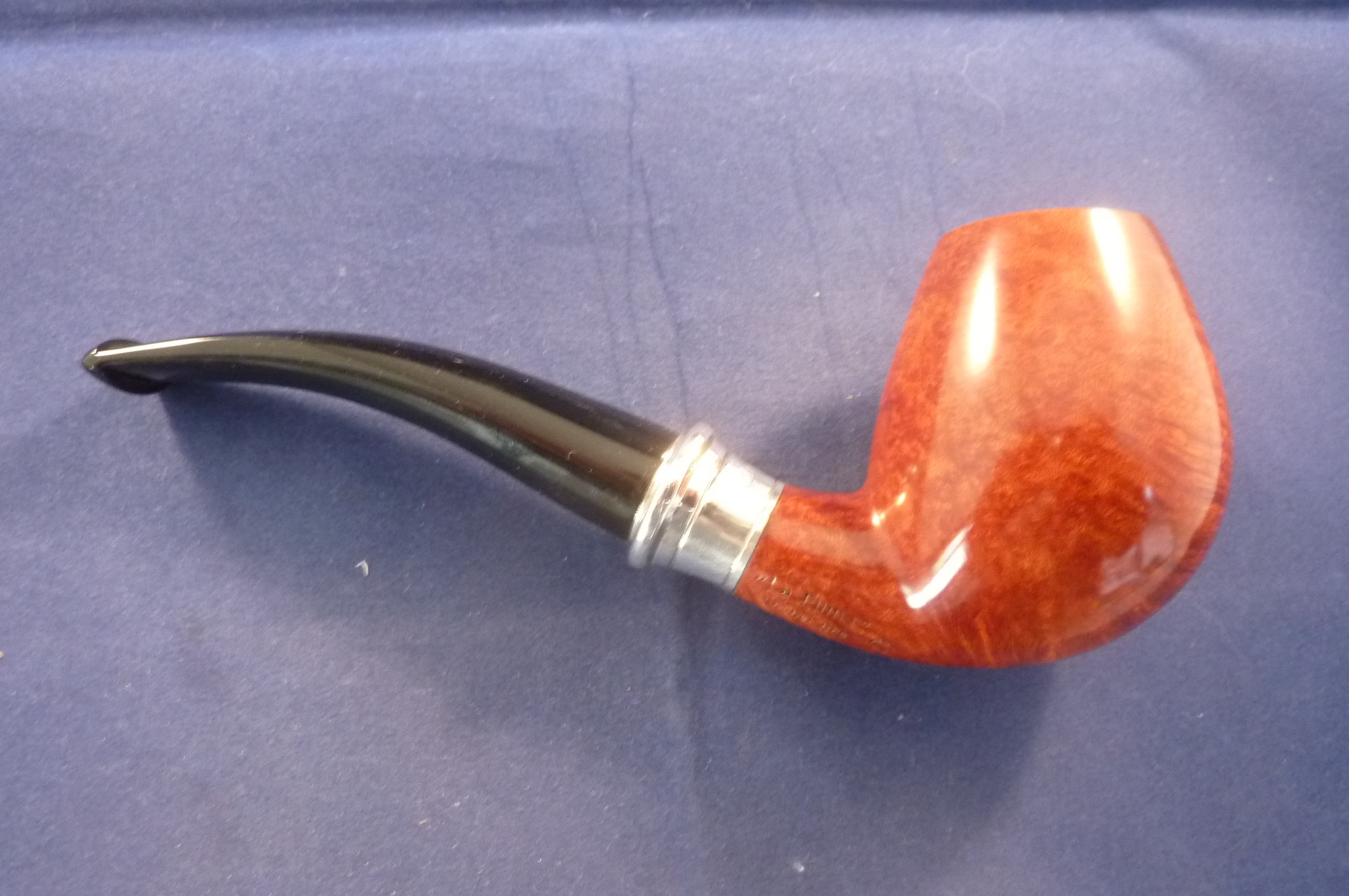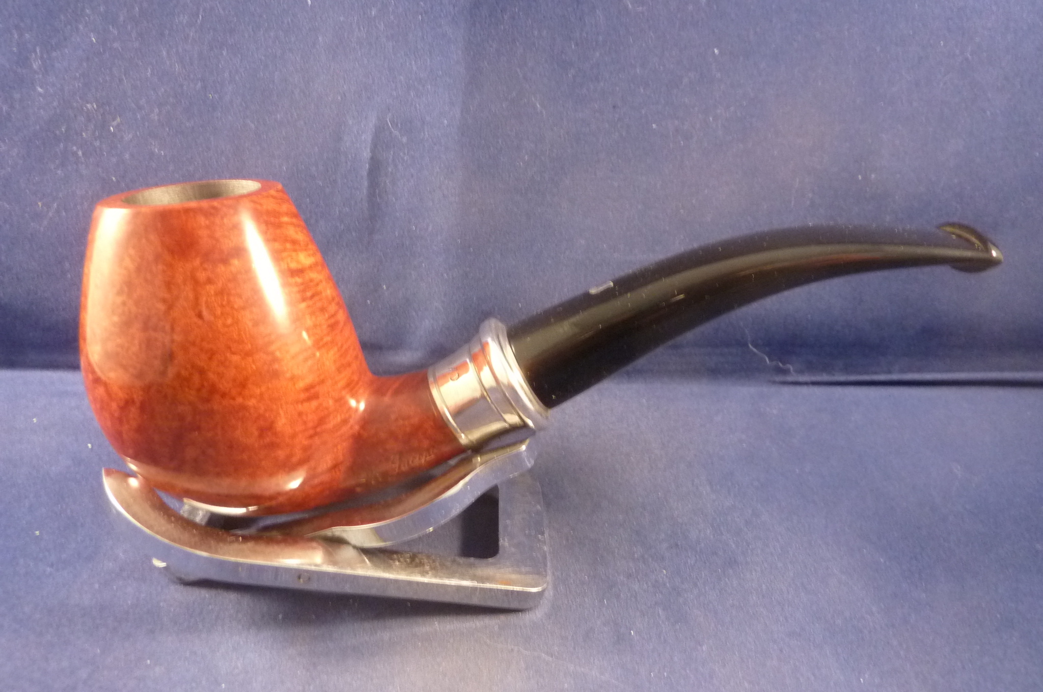 This is a brand new pipe made by Ser Jacopo in Italy. This company has some fine craftsmen, which produce beautiful handmade pipes with great designs and shapes. Smooth briar pipe in an elegant shape with a sterling silver application. Black mouthpiece, 9 mm. filter.