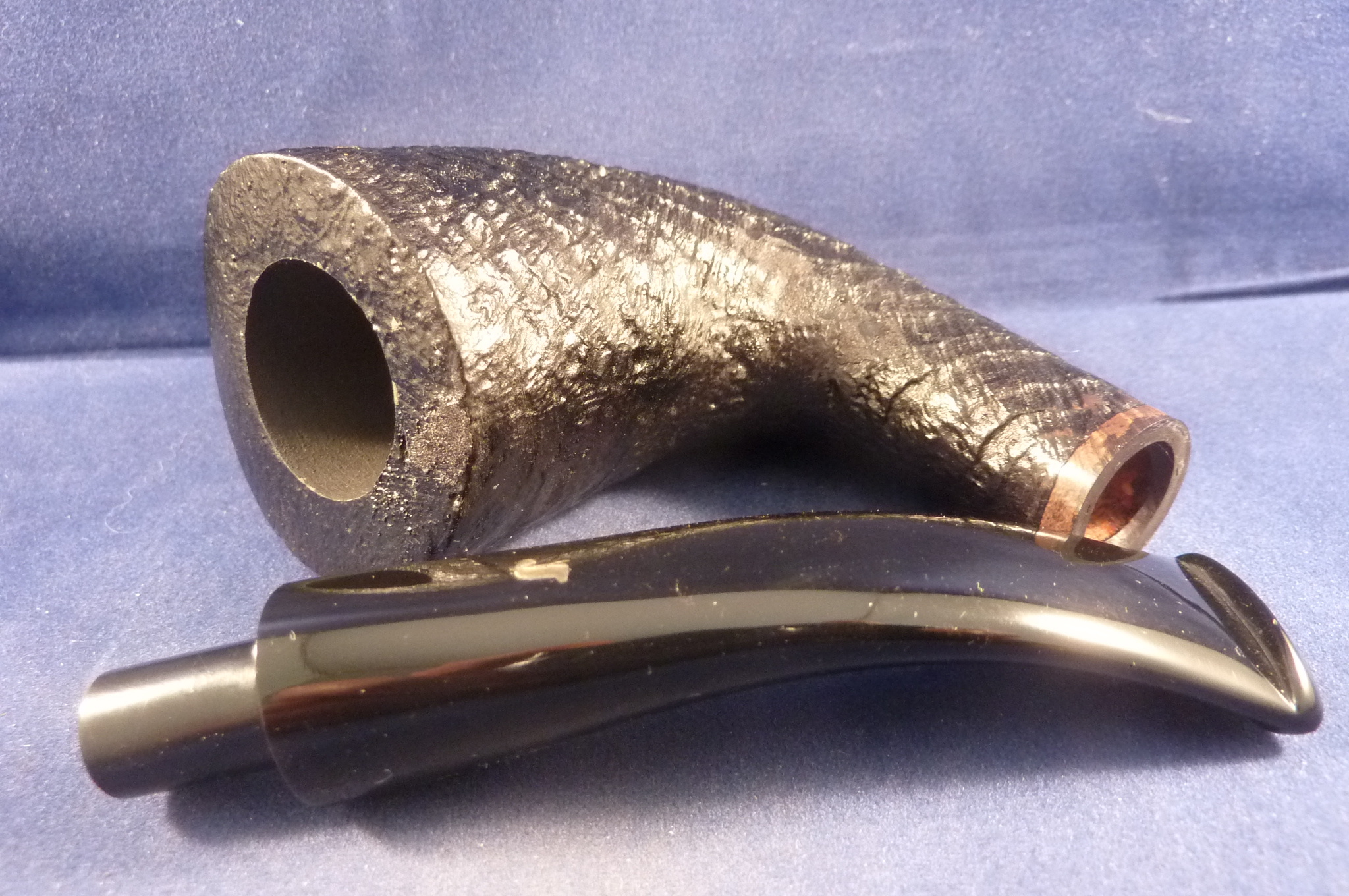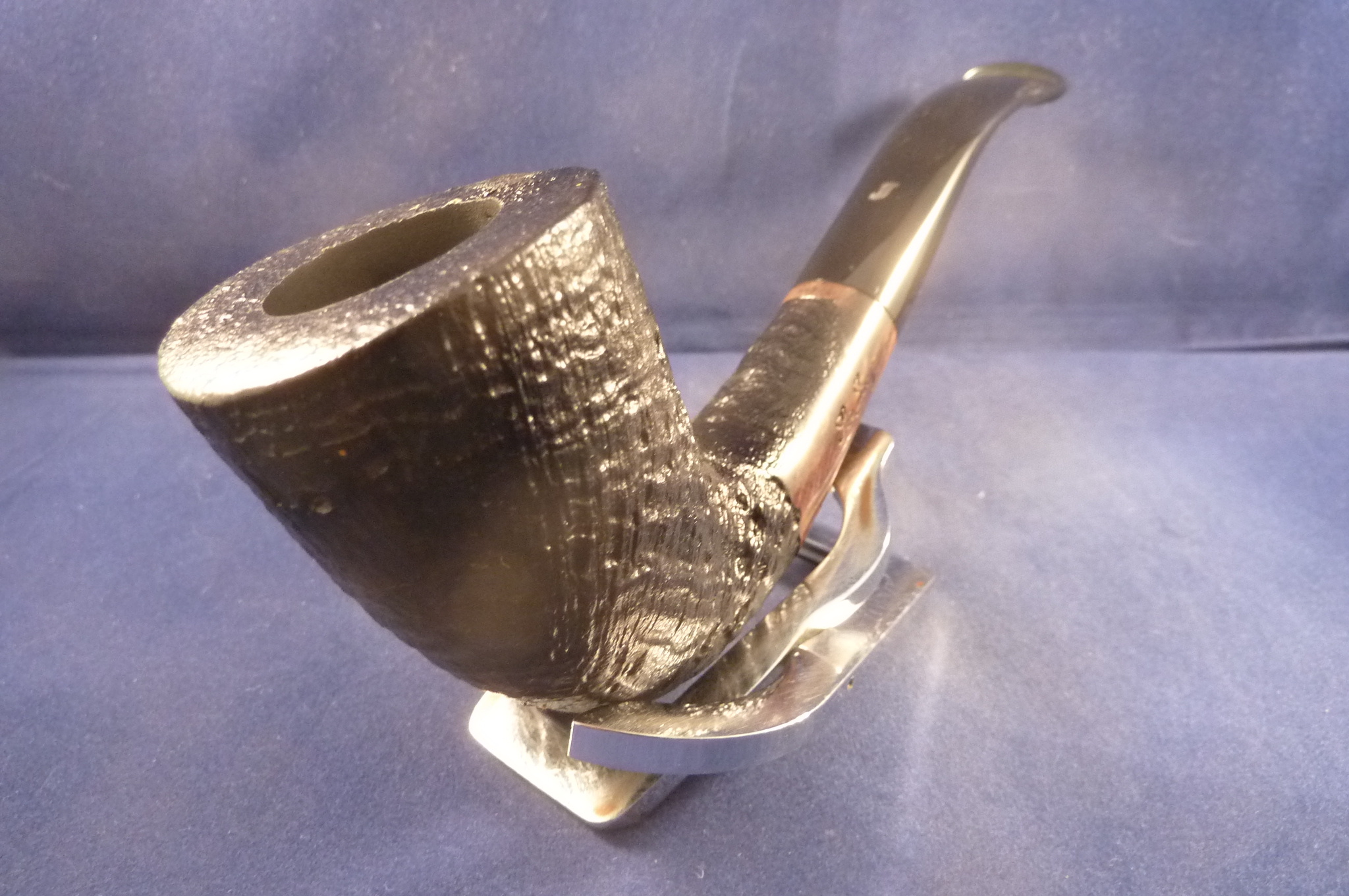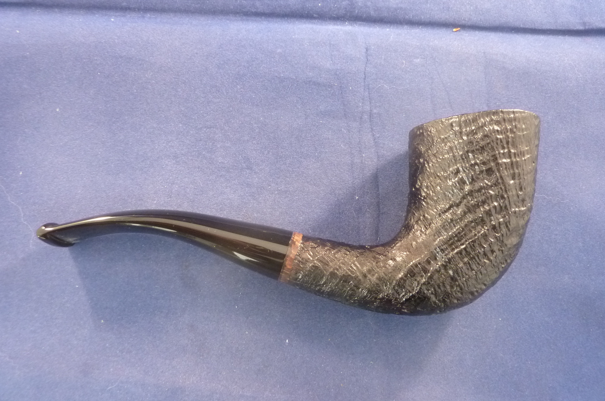 This is a brand new pipe made by Ser Jacopo in Italy. This company has some fine craftsmen, which produce beautiful handmade pipes with great designs and shapes. This sandblasted briar pipe has a beautiful shape. Black acrylic mouthpiece, 9 mm. filter.