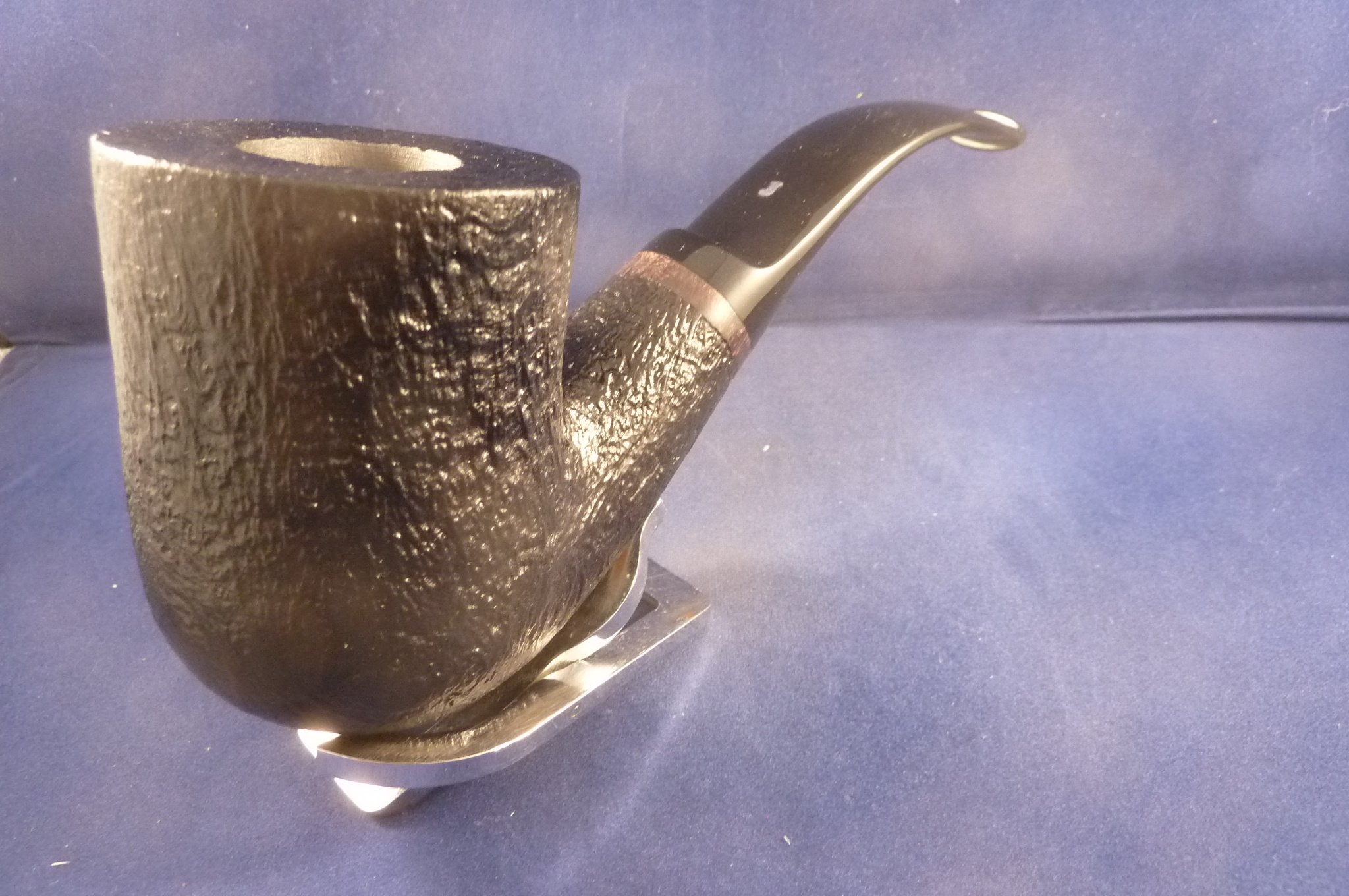 This is a brand new pipe made by Ser Jacopo in Italy. This company has some fine craftsmen, which produce beautiful handmade pipes with great designs and shapes. This giant sandblasted briar pipe has a beautiful shape. Black acrylic mouthpiece, 9 mm. filter.