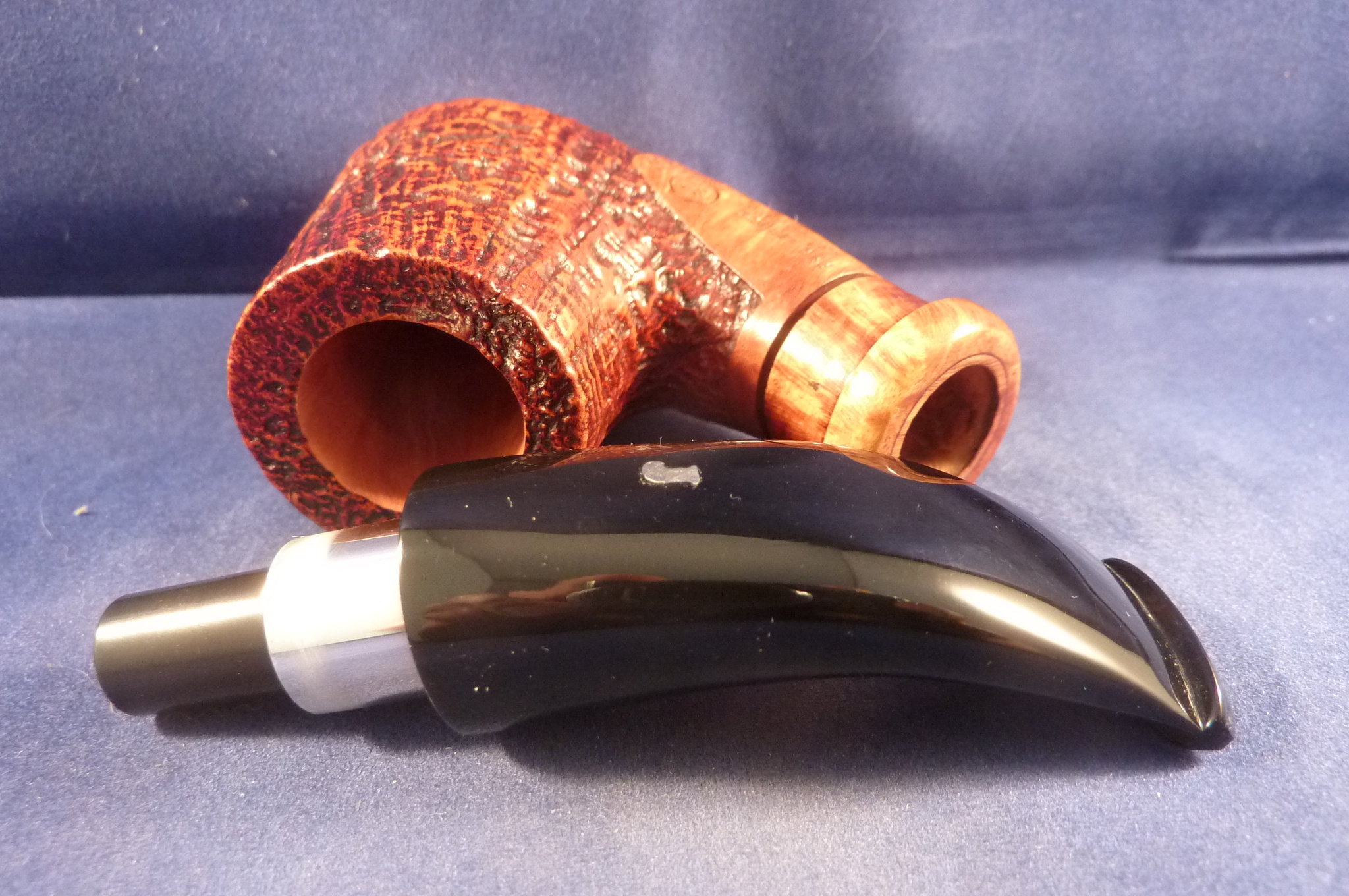 Sandblasted red briar pipe made by Dunhill in the UK. Dunhill selects only the best briar.