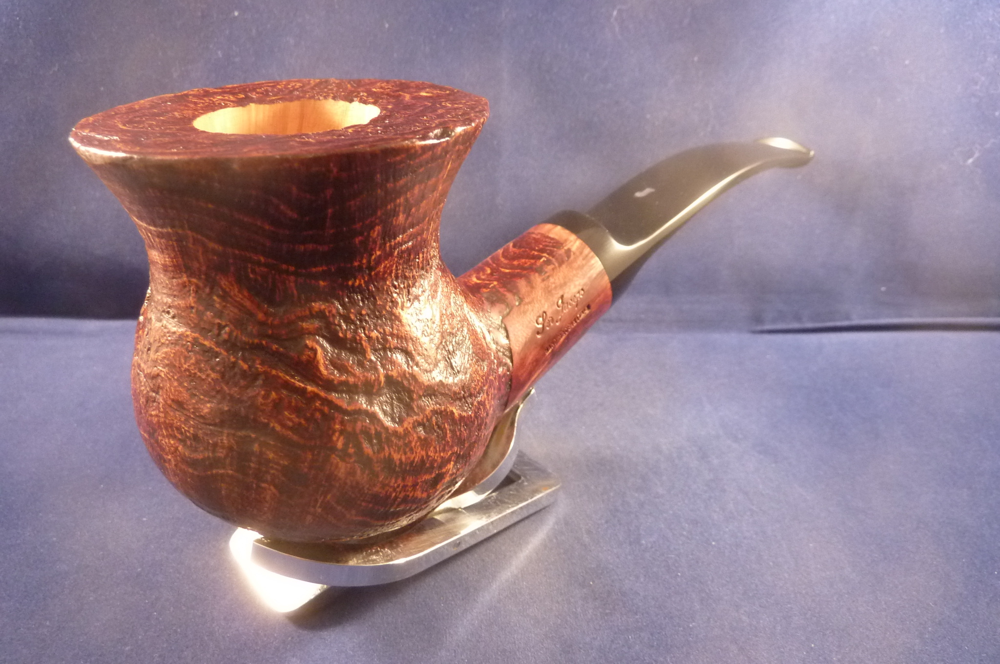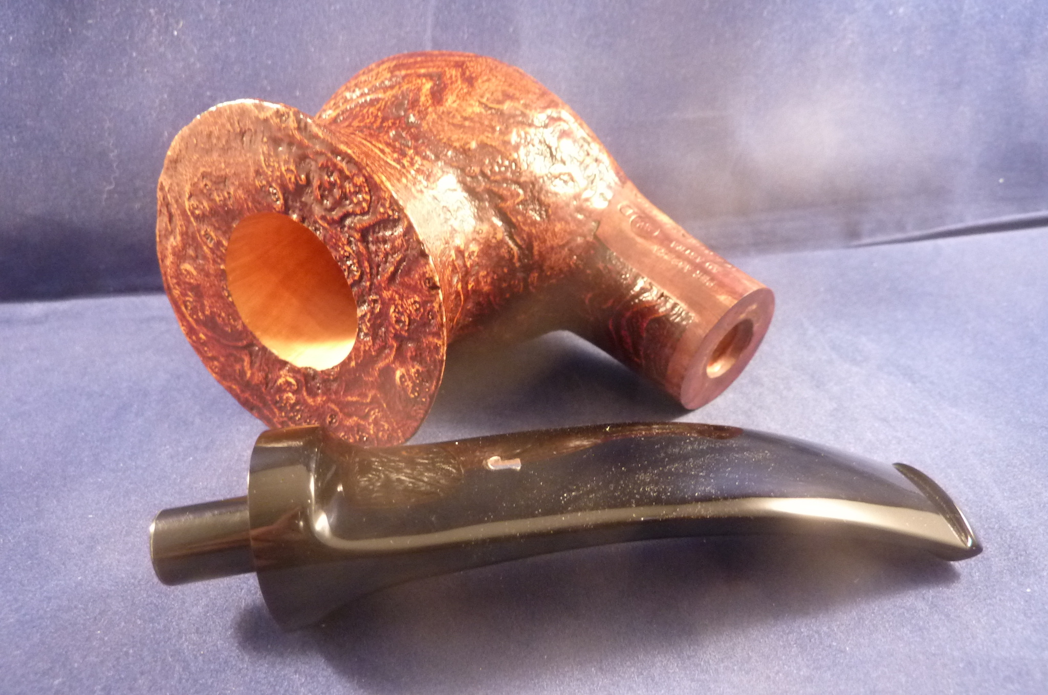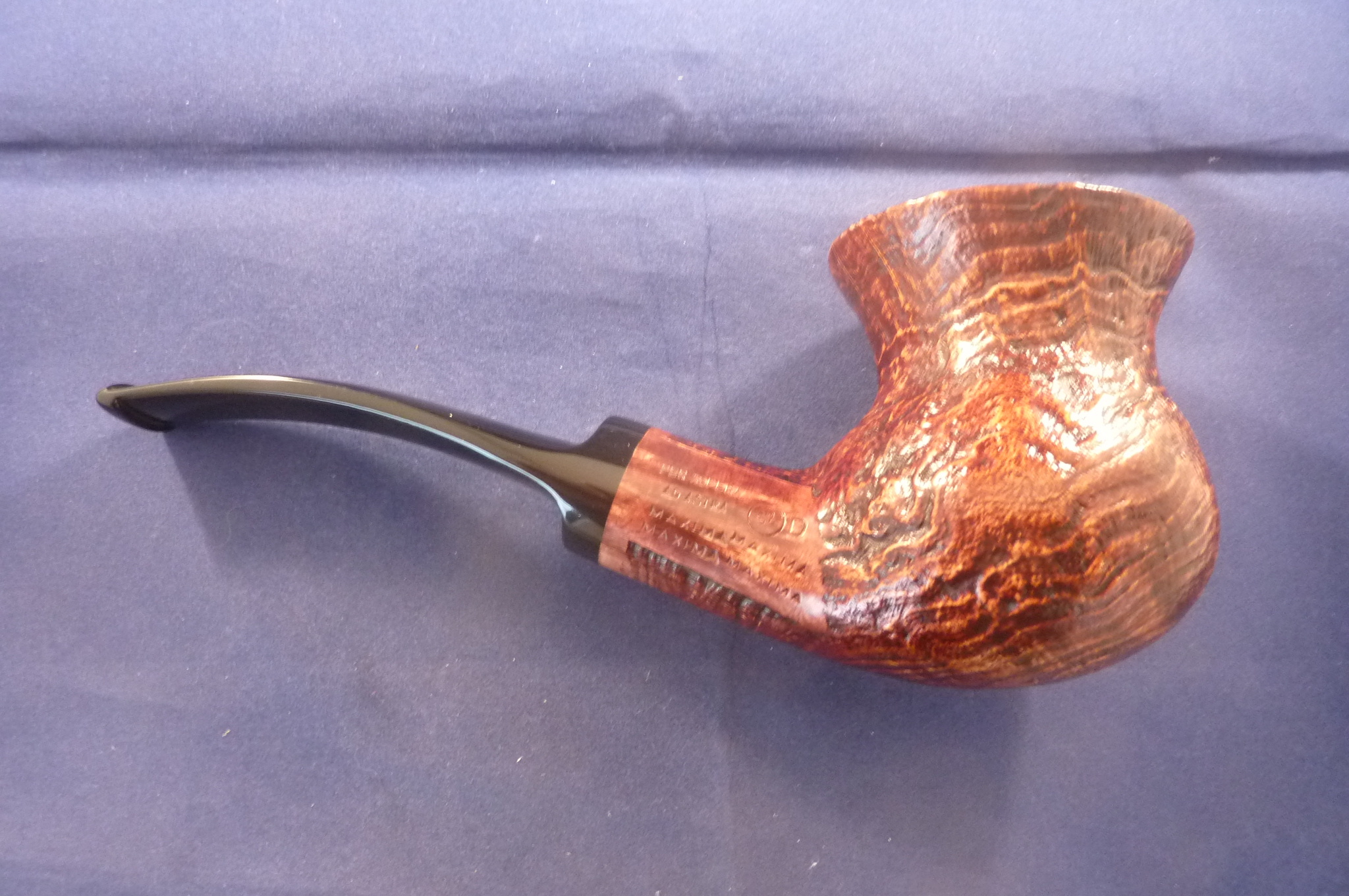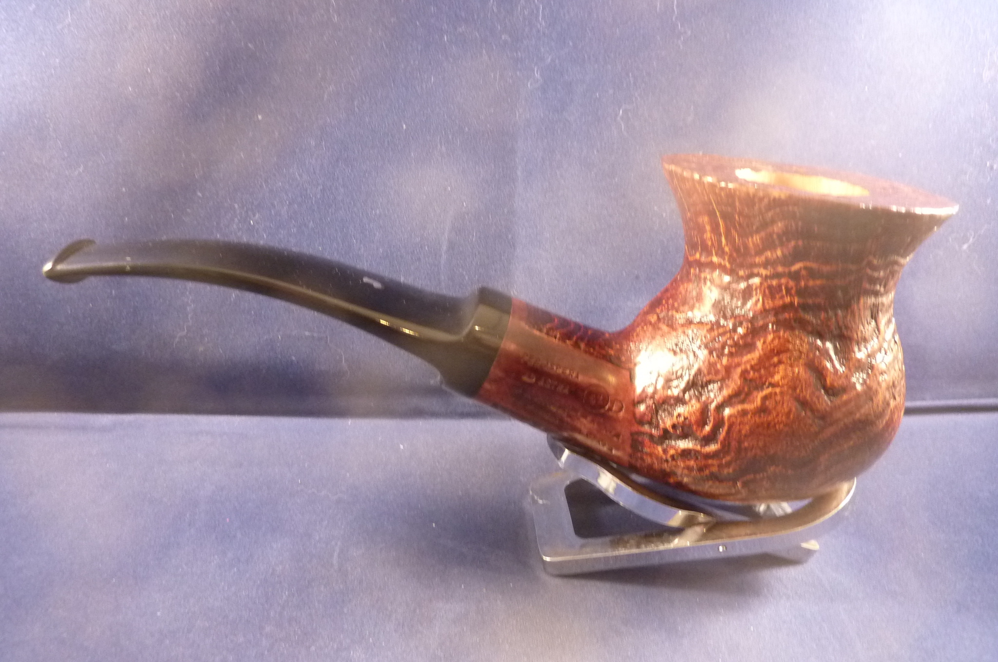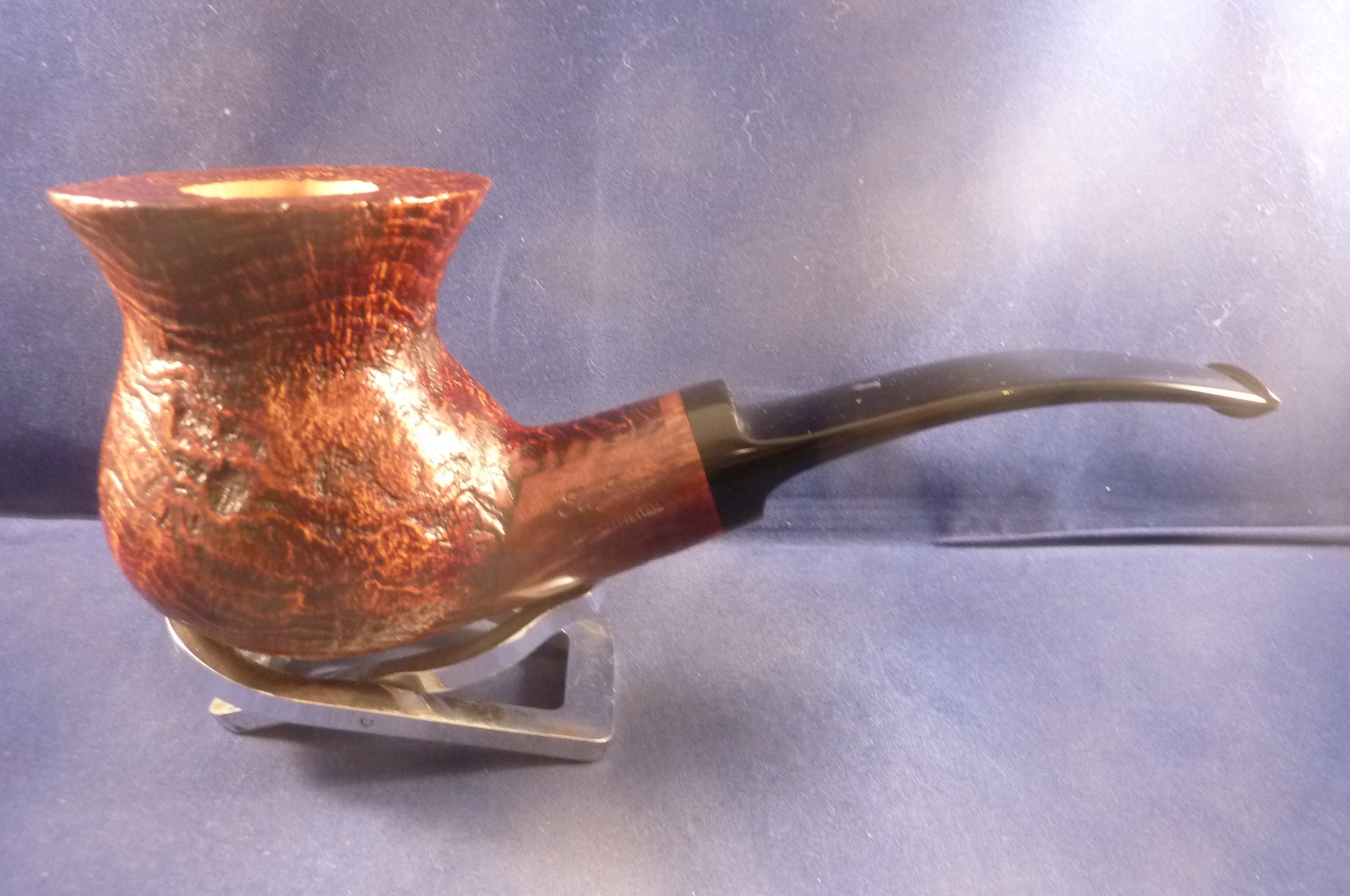 This is a brand new pipe made by Ser Jacopo in Italy. This company has some fine craftsmen, which produce beautiful handmade pipes with great designs and shapes. This giant sandblasted briar pipe has a beautiful shape. Black acrylic mouthpiece, without filter.