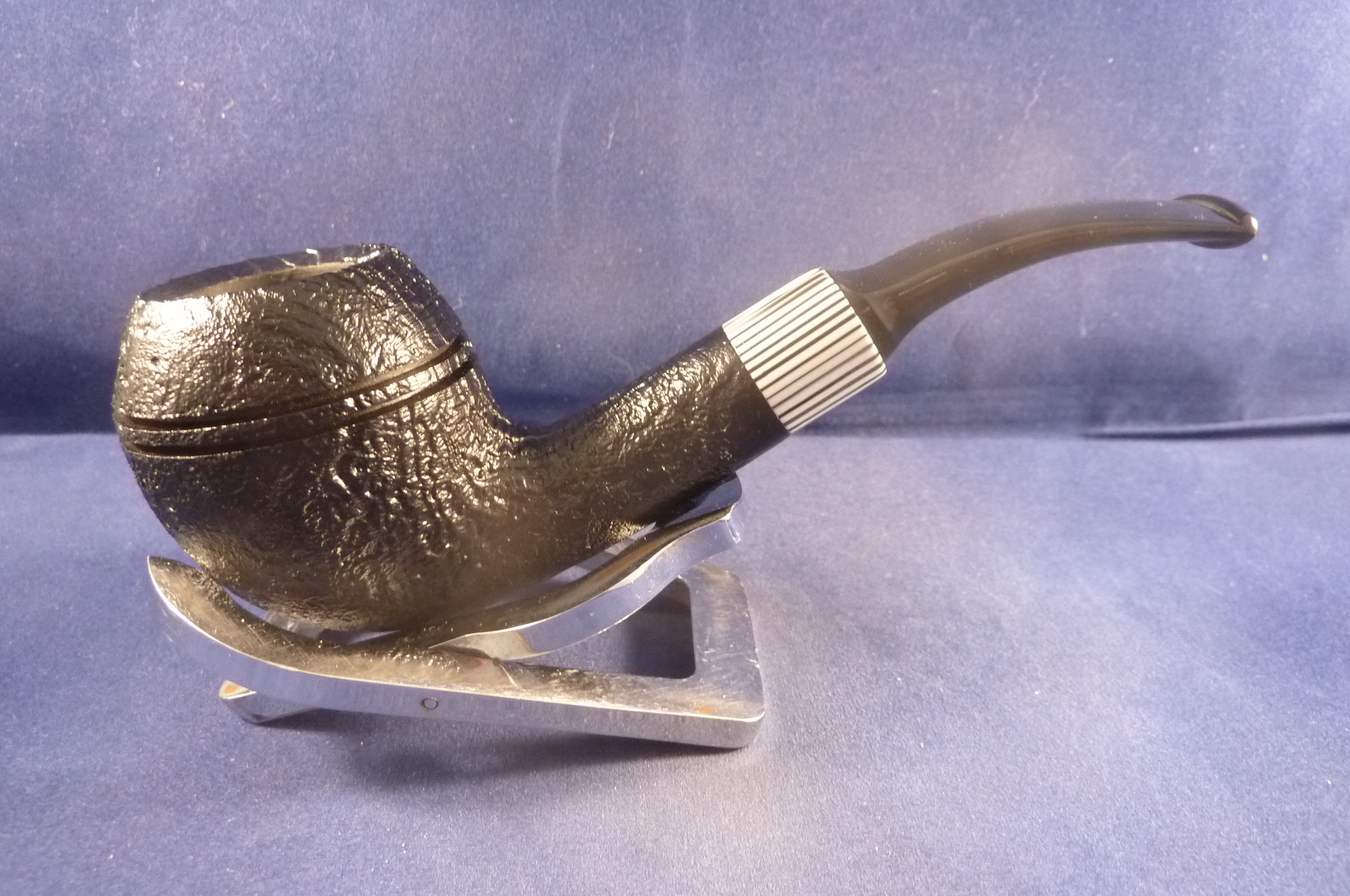 Rusticated briar pipe in a brown finish with a nickel mount,...
