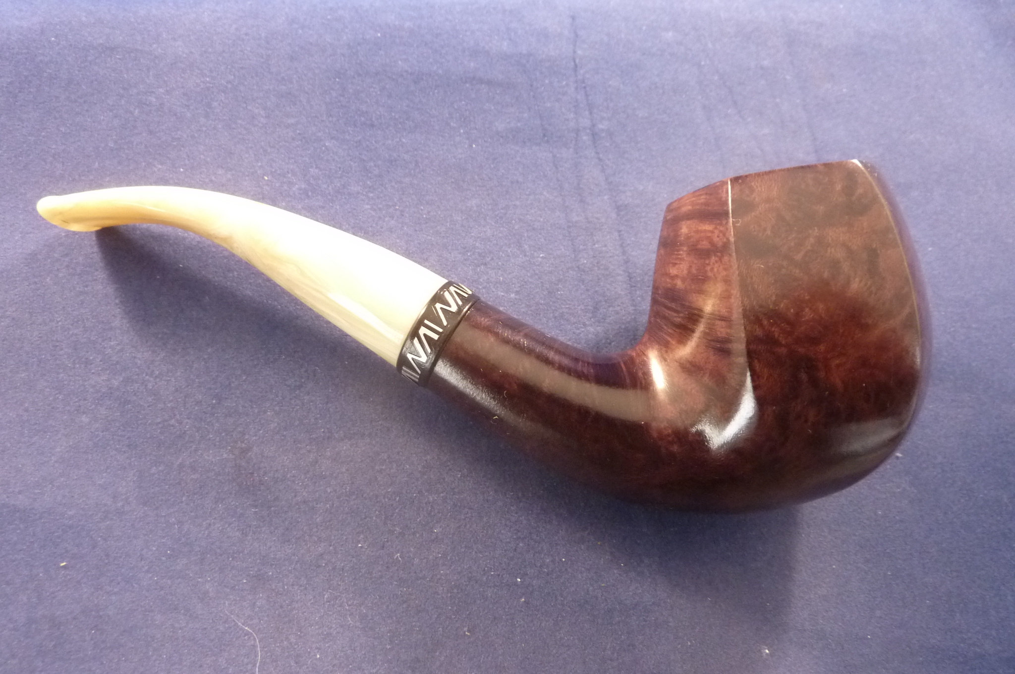 Briar pipe with 2 sterling silver Vauen logos on the stem made by Vauen in Germany.