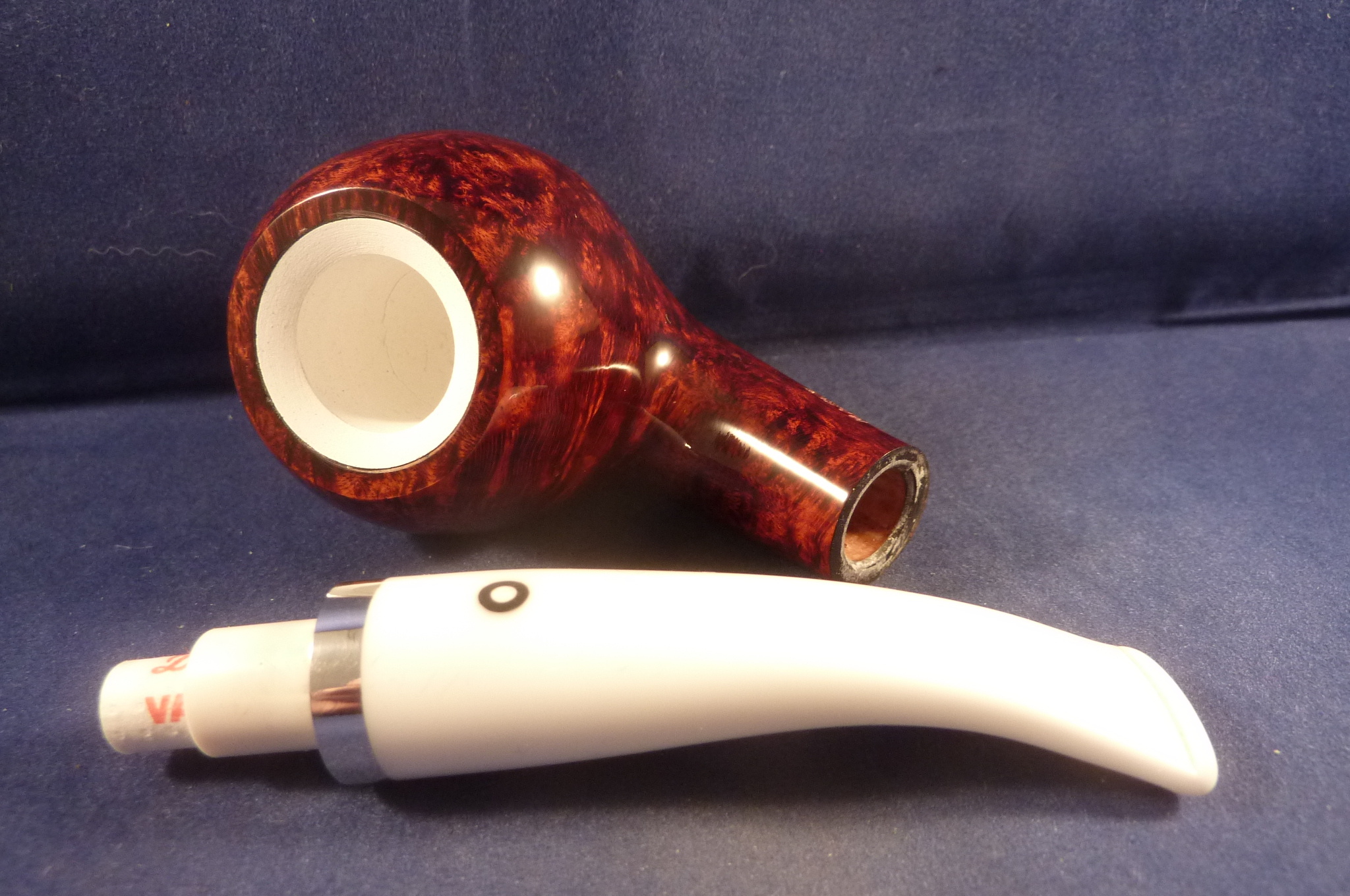 Smooth briar pipe with an inlay simular as meerschaum made by Vauen in Germany. White acrylic army mouthpiece, 9 mm. filter. White dot quality.