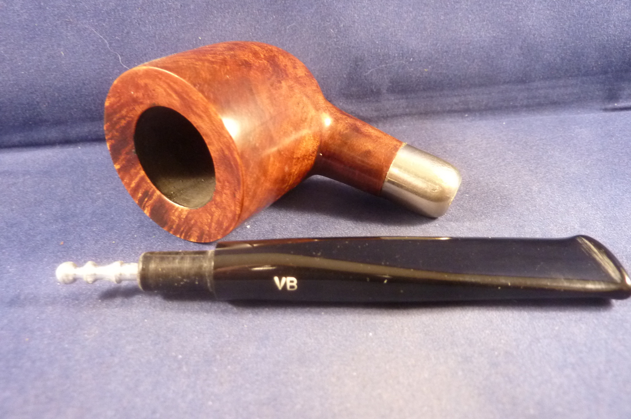 Smooth briar pipe with a metal mount made for Vinche & Koopmans in Belgium, black acrylic mouthpiece without filters.
